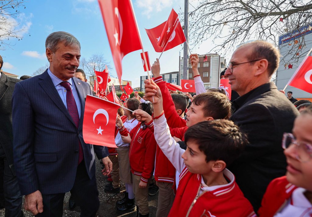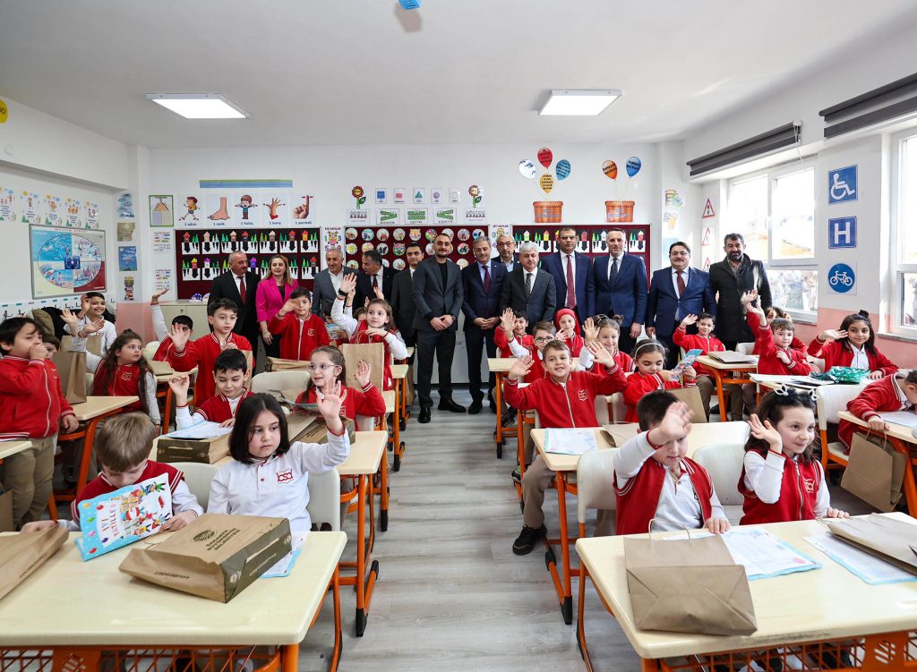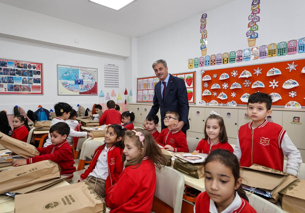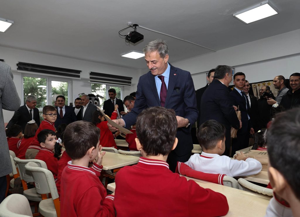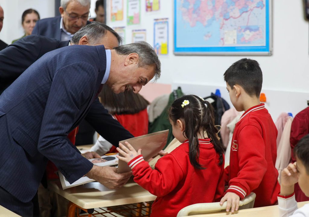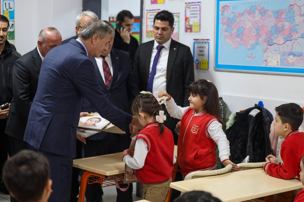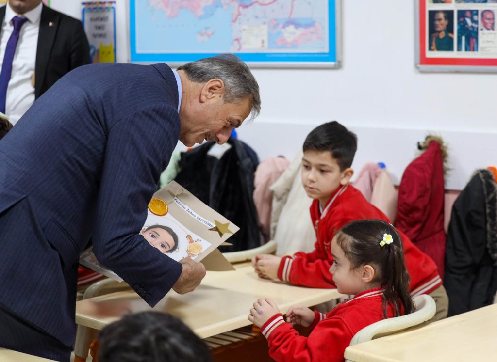 Daha sonra sınıfları tek tek dolaşan Alemdar, Türk bayraklarıyla süslenen okul sıralarında çocukların heyecanını paylaştı, sevincine ortak oldu. Bazı öğrenciler karnelerini Alemdar’ın elinden aldı.