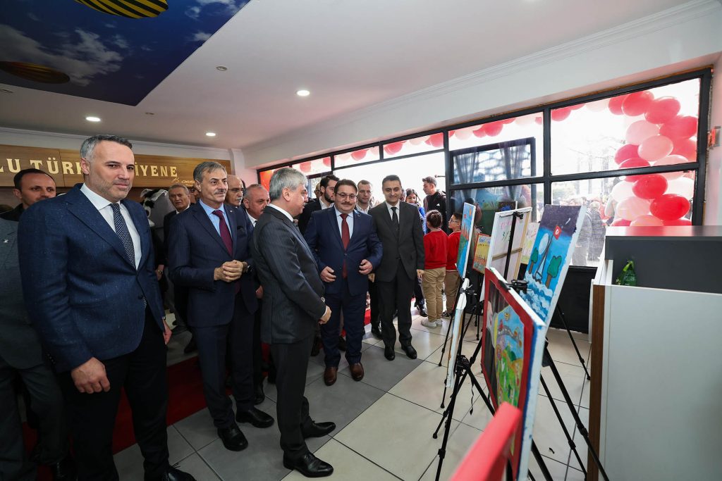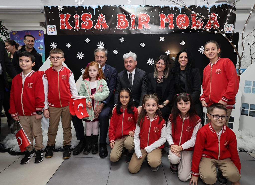 Küçük bir mehteran konseriyle başlayan karne töreninde Başkan Alemdar, öğrencilerin hobi kulüplerinde dönem boyunca hazırladıkları eserleri inceledi.