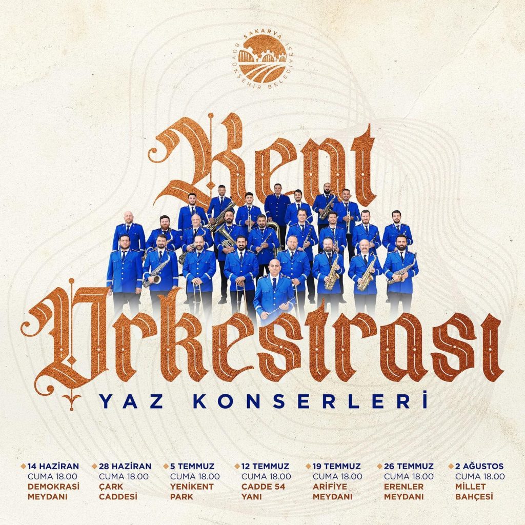 Sakarya Büyükşehir Belediyesi Kültür ve Sanat Etkinlikleri yaz konserleri kapsamında Kent Orkestrası bugün saat 18.00’da Arifiye Meydanına geliyor.