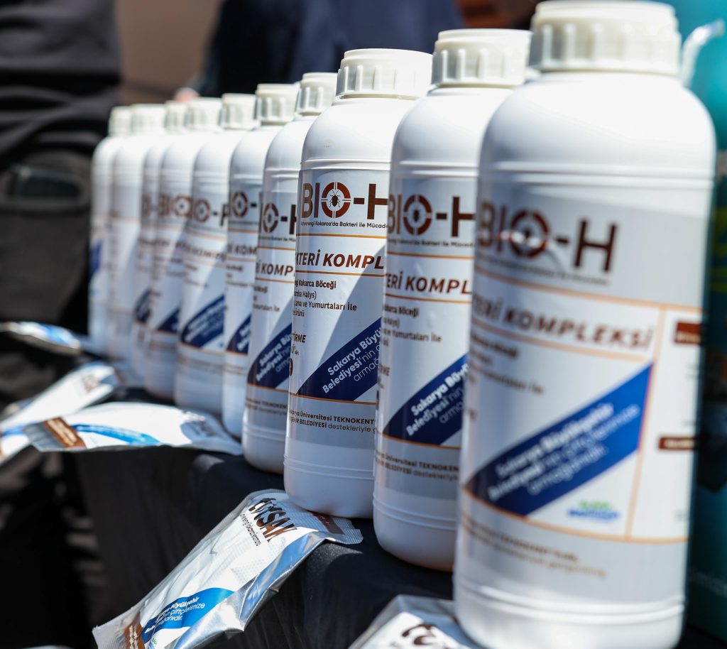 SAÜ Prof. Dr. Mustafa Zengin, “Kahverengi kokarca ile mücadele kapsamında, Ali İhsan Yavuz Bey ve Büyükşehir Belediye Başkanımızın talebiyle bir tuzak (trap) geliştirdik. İlk etapta sadece tuzak üretimi yaptık ancak bunun yeterli olmayacağı anlaşılınca iki farklı sıvı ürün daha geliştirdik. Bu ürünlerden biri, kokarcanın yumurta ve larvalarını etkisiz hale getiriyor. Diğer ürün ise tamamen faydalı toprak bakterilerinden oluşup, kokarcanın yumurtalarını yok ederken toprağı da iyileştiriyor. Bu üçlü ürün sistemiyle kimyasal kullanmadan etkili bir biyolojik mücadele sağlıyoruz” sözleriyle geliştirilen ürünlere dair bilgi paylaşımında bulundu.