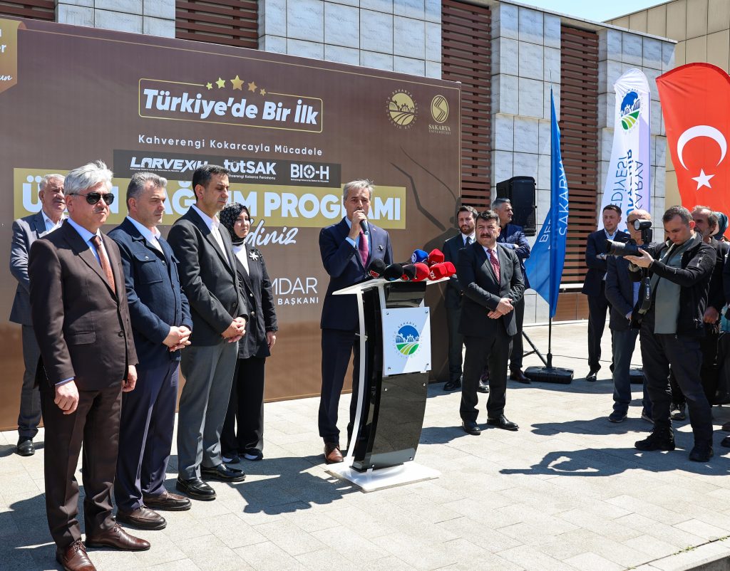 Sakarya Valisi Rahmi Doğan ise, “Kahverengi kokarca, sadece ülkemizi değil, dünyanın birçok ülkesini etkileyen zararlı bir böcektir. Bu tehdide karşı Tarım Bakanlığımız öncülüğünde, il ve ilçe tarım müdürlükleri hem fiziki hem de biyolojik mücadele yöntemlerini bugüne kadar sürdürdü. Ancak bugün tanıttığımız ve üniversitemiz hocalarının geliştirdiği ürün, bu soruna kalıcı bir çözüm sunabilecek nitelikte. Sakarya Üniversitesi’ndeki bilim insanlarımız, yoğun bir çalışmayla bu önemli ürünü geliştirdiler. Hocalarımız, bu ürünü çok kısa sürede piyasaya sunulabilecek aşamaya getirdiler. Çiftçimize ve ülkemize hayırlı olsun” dedi.
