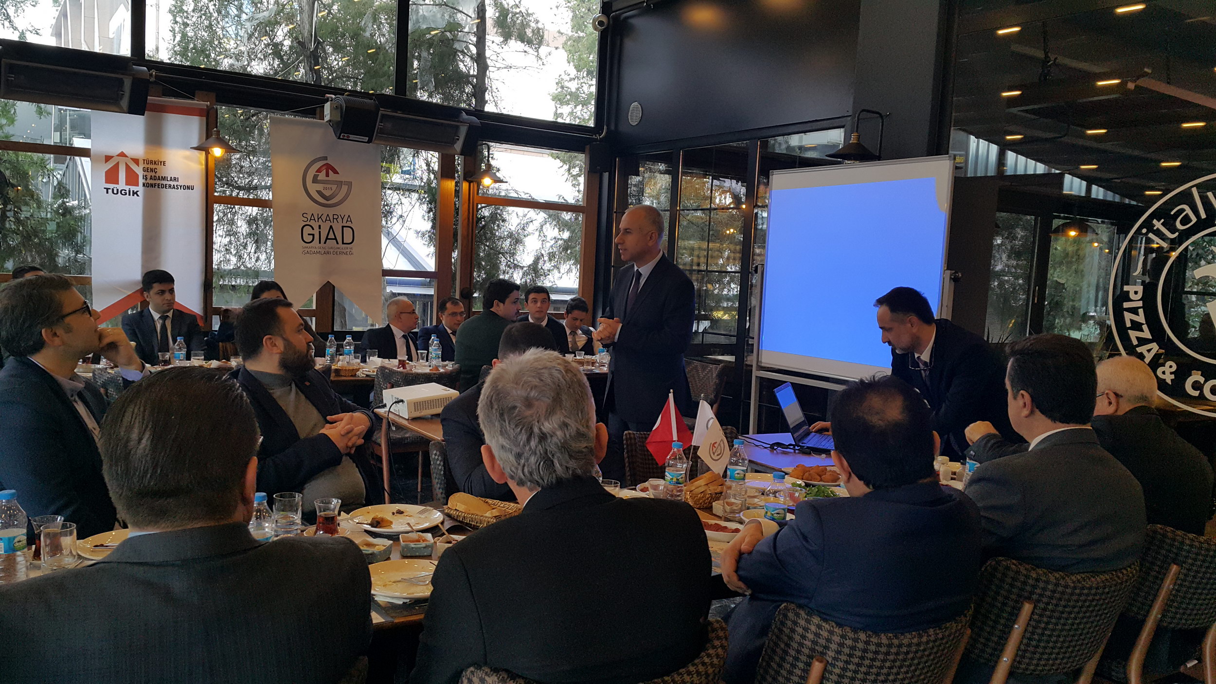 Yılın ilk sinerji toplantısına ev sahipliği yapmanın memnuniyetini dile getiren Sakarya GİAD Başkanı ve TÜGİK Yönetim Kurulu Üyesi Gökhan Korkmaz, Türkiye genelinde bir ilk olarak gerçekleştirilen Öğrenci Temsilciliği çalışması kapsamında öğrencilerin yoğun ilgisiyle karşılaşıldığını ve çalışmanın başarıyla sürdürüldüğünü dile getirdi. Öğrencilerin Sakarya GİAD bünyesinde açılan ofiste çalışmalarını gerçekleştirdiğini ifade eden Korkmaz, öğrencilerin iş dünyasıyla buluşturulmaya başlandığını söyledi. Çalışmanın farklı iller nezdinde de ilgiyle karşılaşıldığını belirten Korkmaz, yakın bir zamanda çalışmayı tanıtmak ve uygulamaya geçirmek üzere Uludağ Üniversitesi’ne misafir olacaklarını belirtti. Öğrenci temsilciliği koordinatörlüğünde ve yürütülecek faaliyetler kapsamında üniversite öğrencilerinin üye kuruluşlarıyla bütünleştirilmesinin hedeflendiği çalışma kapsamında eğitim programları, bilgilendirme seminerleri gibi etkinlikler gerçekleştiriliyor.