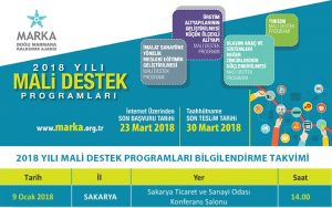 Söz konusu mali destek programları ile ilgili bilgilendirme toplantısı 9 Ocak 2017 Salı günü saat 14.00’te Sakarya Ticaret ve Sanayi Odası Konferans Salonu’nda gerçekleştirilecek.