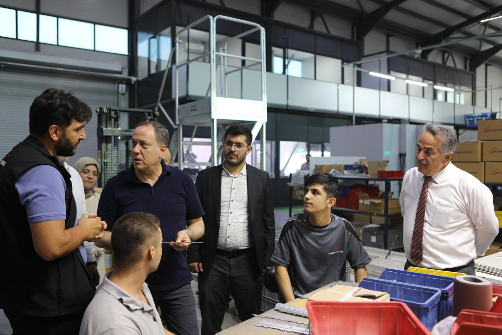 Milletvekili Murat Kaya, Belediye Başkanı İsmail Karakullukçu, AK Parti İlçe Başkanı Fatih Yeşilyurt ve yönetim kurulu üyeleri ile birlikte ilçemizde faaliyet gösteren Taner Havacılık Makina Fabrikasında,Fabrika Müdürü Taner Kahveci’ye ve çalışanlarını