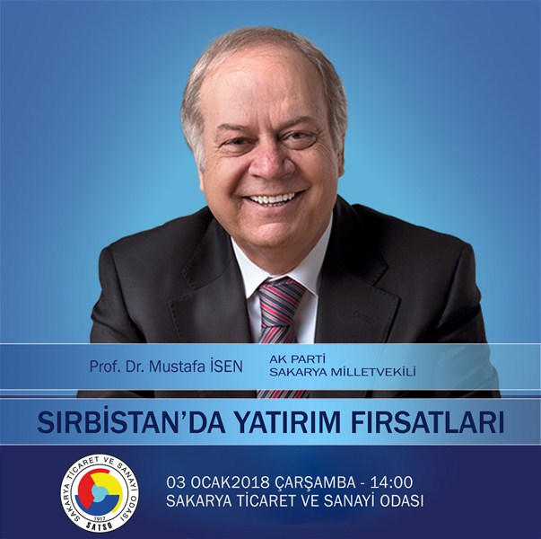 Bu doğrultuda 2018 yılının ilk etkinliği olarak AK Parti Sakarya Milletvekili Prof. Dr. Mustafa İsen’in sunumuyla 03 Ocak 2018 Çarşamba Günü Saat 14.00’da “Sırbistan’da Yatırım Fırsatları” konulu seminer gerçekleşecek..