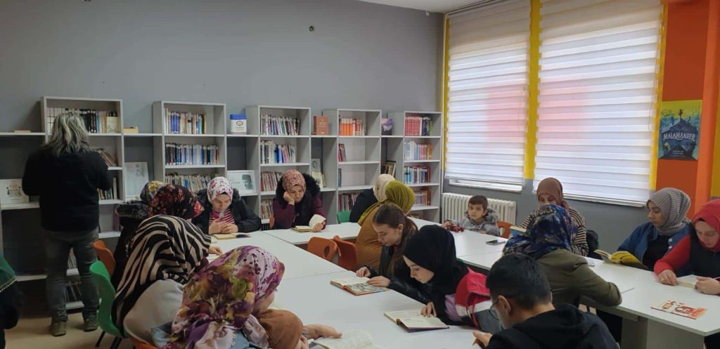 Okulun öğretmenleri, öğrencileri ve velileri bir araya gelerek “Ailemle Kitap Okuyorum” etkinliğinde buluştu.