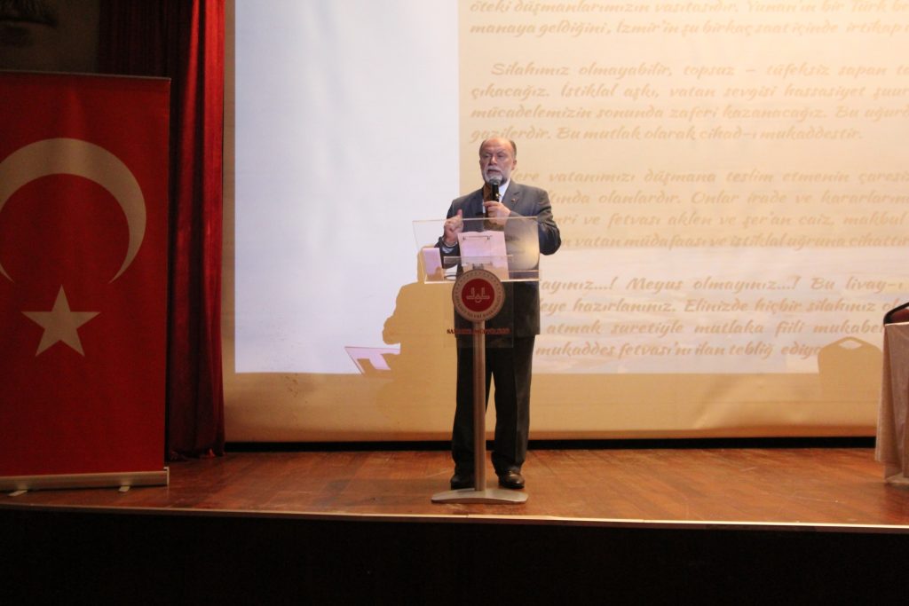 Programa konuşmacı olarak katılan Prof. Dr. Ali Sarıkoyuncu “milli mücadelenin Türk ulusunun varlığını ve bağımsızlığını korumak için maddi manevi bütün varlığını seferber ettiği bir dönemde milletin ruhunda ve benliğinde mevcut olan direnme gücünü ateşleyen din adamları, Milli Mücadele fikrinin doğuşunda önemli bir faktör olmuşlardır” dedi.