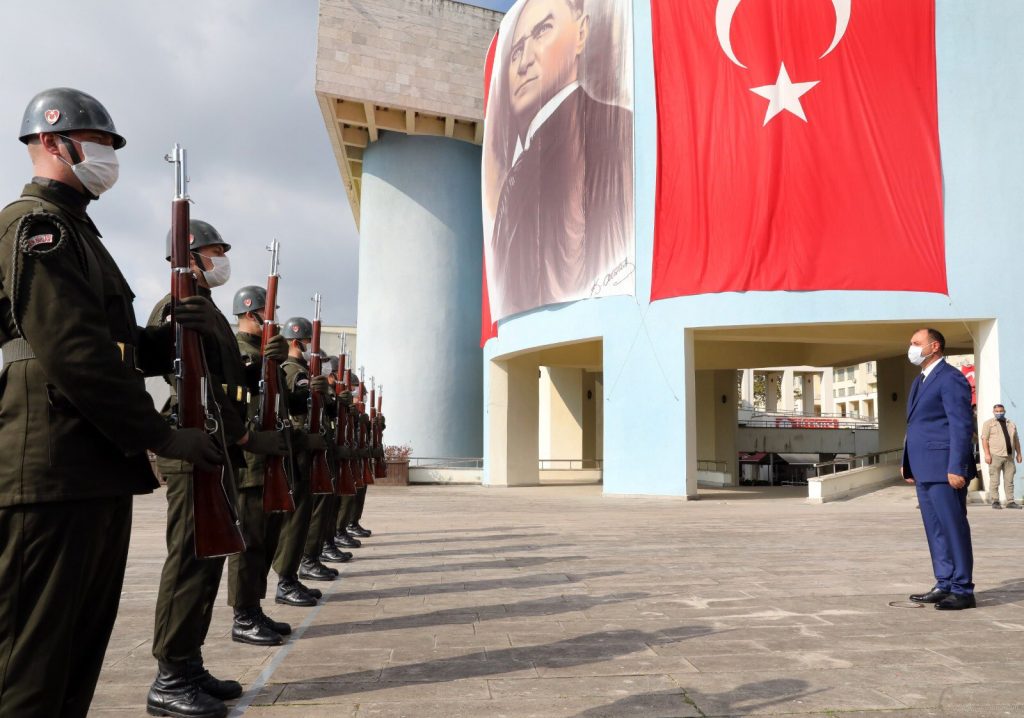 Sabah saatlerinde başlayan ilk törende Tören Mangasını selamlayan Valimiz Sayın Çetin Oktay Kaldırım, Garnizon Komutanı ve 7. Komando Tugay Komutan Vekili P. Alb. Fahri Can Çağlar, Büyükşehir Belediye Başkan Vekili Mustafa Karahasan ve Türkiye Muharip Gaziler Derneği Sakarya Şube Başkanı Erol Demir ile birlikte Resmi Daireler Kampüsündeki Atatürk Anıtına çelenk koydu. Saygı duruşu ve İstiklal Marşının okunmasının ardından ay yıldızlı al bayrağımız göndere çekildi.