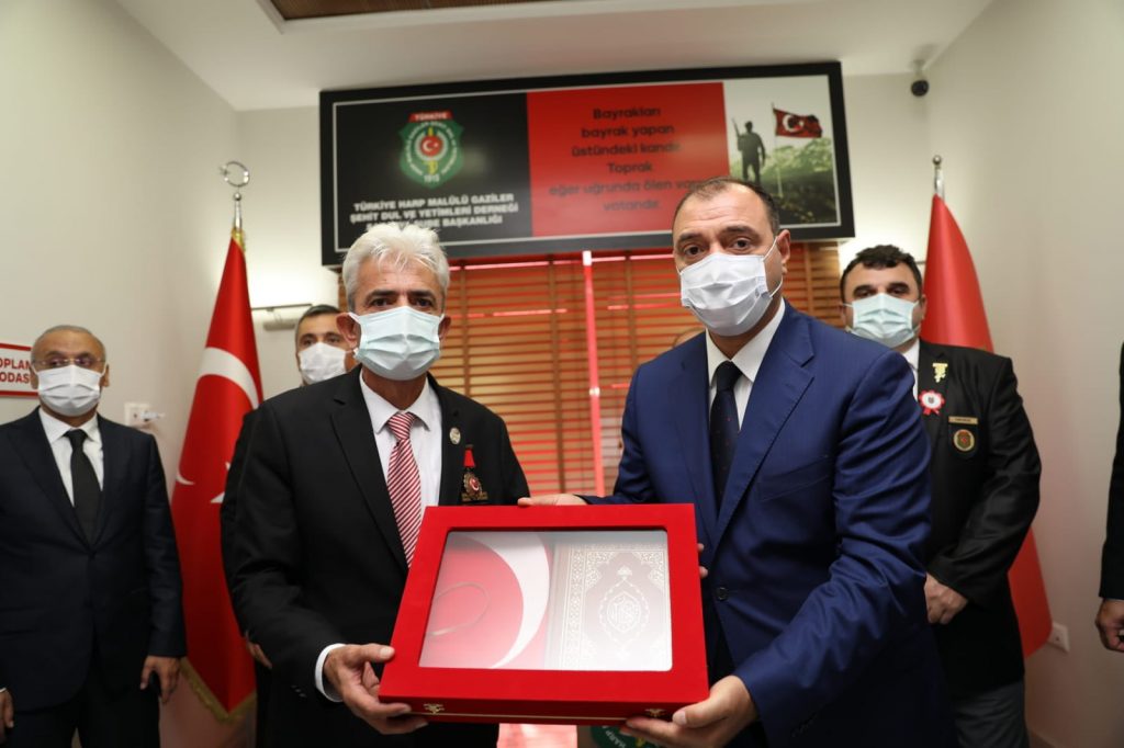 Şeref Defterini imzalayarak Başkanlar Erol Demir ve Mustafa Çolak’tan derneklerin faaliyetleri hakkında bilgiler alan Vali Kaldırım, Gazilerimiz ve Şehit yakınlarımızın görüş, talep ve isteklerini de dinleyerek Aziz Şehitlerimiz ile Kahraman Gazilerimiz ve onların ailelerine minnettar olduklarını ifade etti.