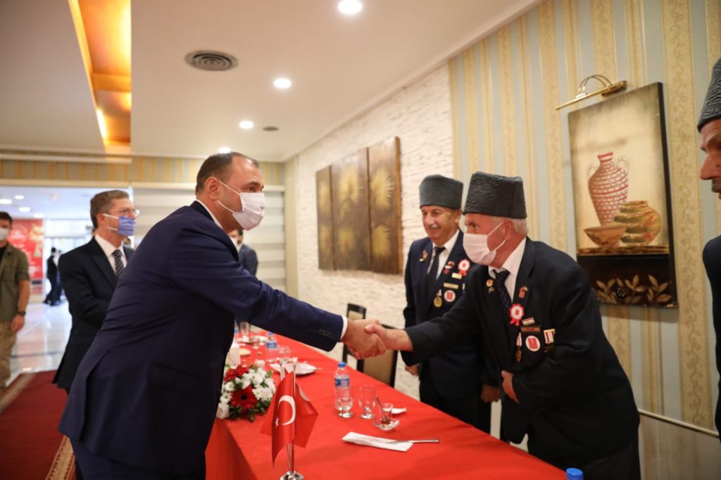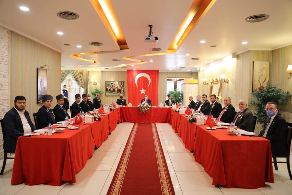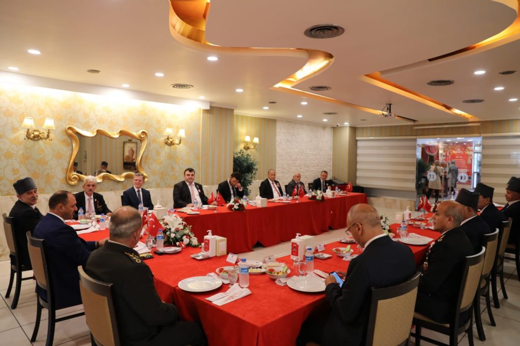 Buradaki ziyaretin ardından Vali Çetin Oktay Kaldırım, Valiliğimiz tarafından organize edilen yemek programında Kahraman Gazilerimiz ile bir araya geldi. Ebediyete irtihal etmiş Kahraman Gazilerimiz ve Aziz Şehitlerimizin dualarla yad edildiği programda Gazilerimizle tek tek selamlaşan ve onlarla bir araya gelmekten dolayı büyük bir mutluluk duyduğunu ifade eden Vali Kaldırım, bu mukaddes vatan toprağının; varlığını Milletimize adamış Kahraman Şehitlerimizin ve Gazilerimizin bizlere emaneti olduğunu, bu bilinç içerisinde, Yüce Devletimiz ve Kadirşinas Milletimizin, Gazilerimizin hatırasını her daim canlı tutarak onları yad ettiğini, Gazilerimize ve onların ailelerine de hak etmiş oldukları değeri her koşulda gösterdiğini söyledi. Tüm Şehitlerimiz ve ebediyete irtihal etmiş olan Gazilerimiz için İl Müftüsü Hasan Başiş tarafından dua yaptırılan programın sonunda Vali Çetin Oktay Kaldırım, Gazilerimiz ile bir süre sohbet etti