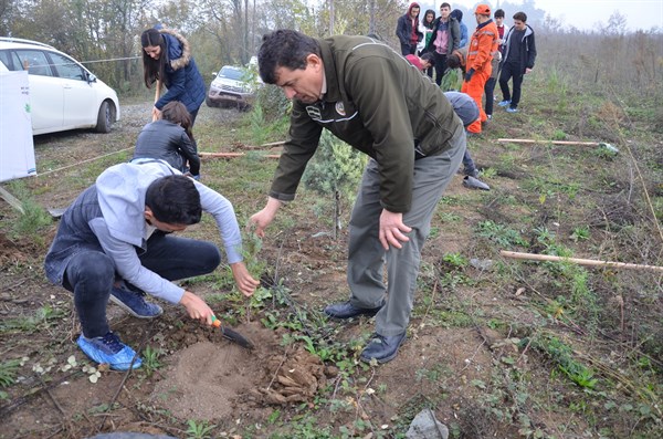 Adapazarı Orman İşletme Müdürlüğü Yeniköy Orman İşletme Şefliği, Adliye Mahallesi, 24’nolu bölmede, 24 Kasım Öğretmenler Günü kutlama etkinliği kapsamında fidanlar toprakla buluştu.