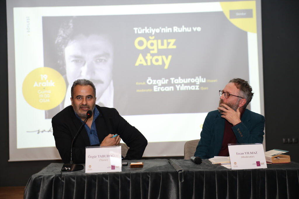 Yazar Özgür Taburoğlu ise, “Bizler üniversite yıllarında Oğuz Atay’ı çok fazla okurduk ve o dönemde belki de meseleyi hakkıyla anlayamazdık. O dönemde kendisi yeni yeni tanınmaya başlamıştı. Tabi daha sonra Oğuz Atay’ı daha iyi anlamaya başladık ve bu ülke için ne kadar büyük bir değer olduğunu daha iyi kavramaya başladık. Kendisinin birçok eseri vardı. Fakat ömrü vefa etseydi Türkiye’nin ruhunu yazacaktı. Kendi günlüğünde ifade ettiği gibi, hedefi, kişilerin iç dünyalarını terk edip, dışarı çıkmaya meyilli ve bundan çekinmeyen insanlar yaratmaktı” diye konuştu.