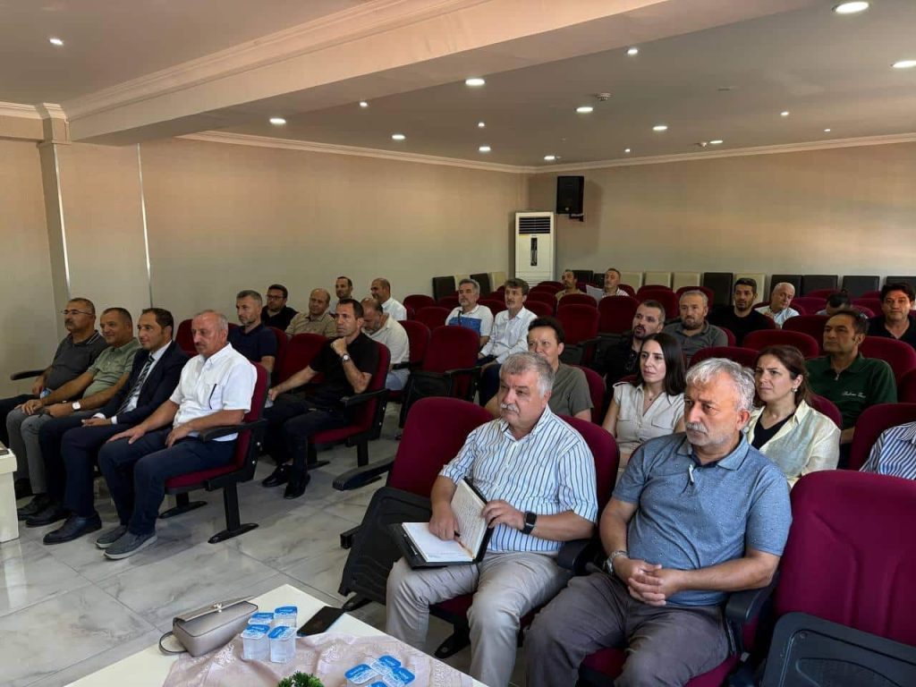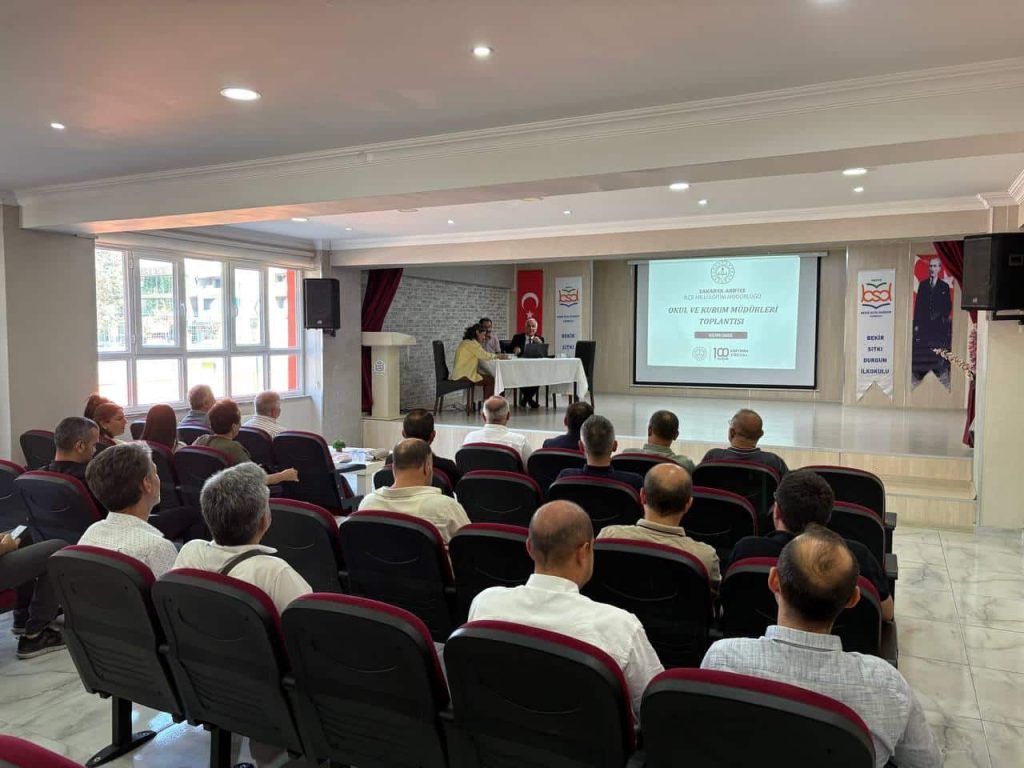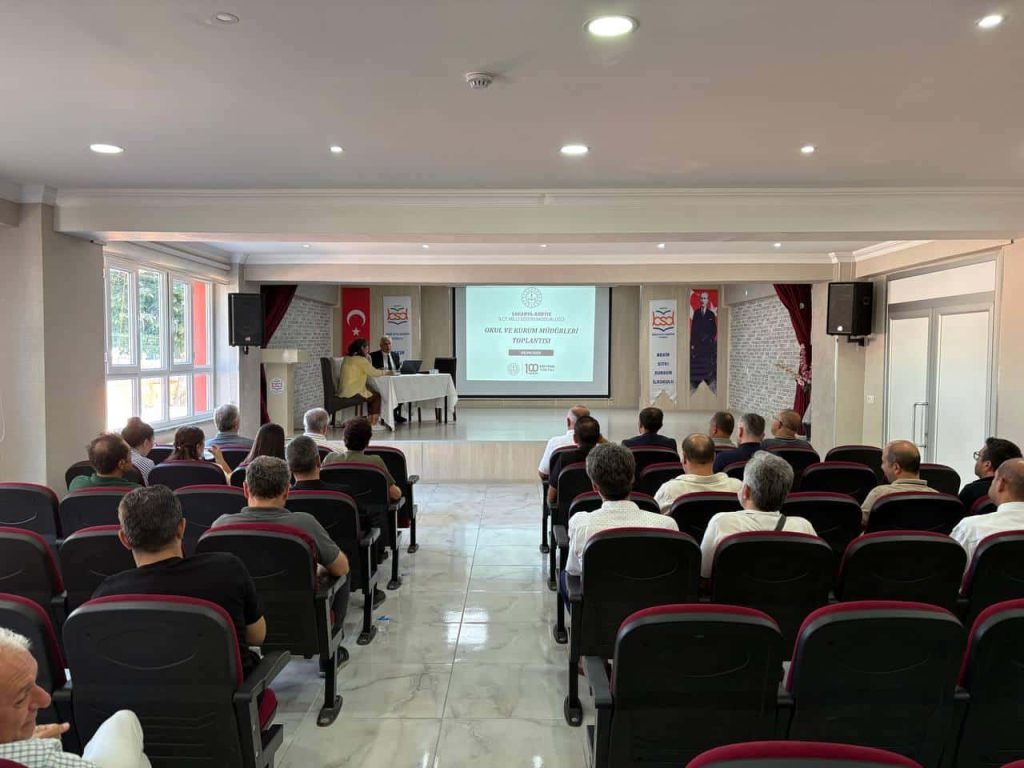 İlçe Milli Eğitim Müdürü Ali Dere,Şube Müdürü Mehmet Taşkıran ile birlikte okul ve kurum müdürlerinin katılımıyla 2025-2026 eğitim ve öğretim yılı başı müdürler kurulu toplantısını gerçekleştirdi.