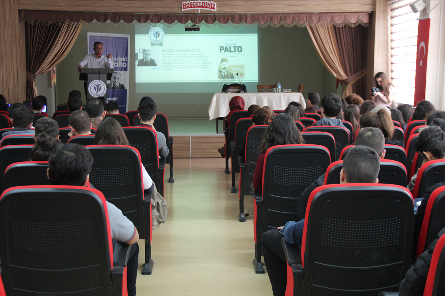 Musa Yaşaroğlu, “Şuan elinizde kâğıt tomarı tutuyormuşsunuz gibi olabilir ama ben o elinizde tuttuğunuz kâğıt tomarına, bir buçuk yılımı harcadım. Yazmak dediğimiz şey tamamen dertten ortaya çıkar. Yazdığım kitapla ilgili tek bir düşüncem vardı. Bu ülkenin gençlerine Mehmet Akif Ersoy’u anlatmak. Üniversitedeyken Necip Fazıl hayranıydım. Bitirdikten sonra Mehmet Akif’le tanıştım. Hepimizin kafasında oluşturduğu bir rol, bir idol vardır, kendinden bir şeyler bulduğu insanlar vardır, ona hayran kalmışsınızdır. Akif’te ben bunu gördüm. Onun hayatını incelemeye başladıkça anladım ki aslında iyi insan olabilmek mümkün. Bu hislerin sonucunda, ‘Sürgündeki Palto’ adlı kitap ortaya çıktı.”