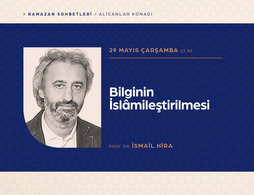 Büyükşehir Belediyesi Ramazan Kültür Sanat Etkinlikleri 29 Mayıs Çarşamba günü ‘Bilginin İslamileştirilmesi’ konulu Ramazan Sohbeti ile devam edecek Prof. Dr. İsmail Hira’nın konuşmacı olarak katılacağı program Tarihi Alicanlar Konağında saat 22.30’da başlayacak.