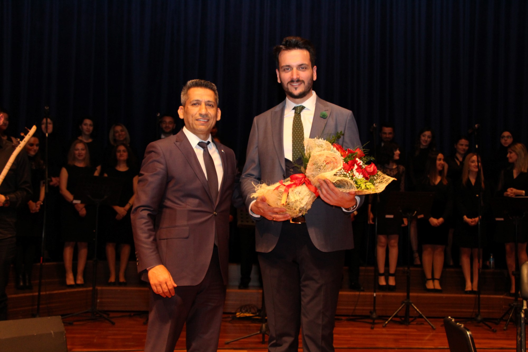 Konuşmasının ardından Başkan Burak katılımları dolayısıyla ve verdiği emekler için Orkestra Şefi Doç. Dr. Sertan Demir’e çiçek takdim etti.