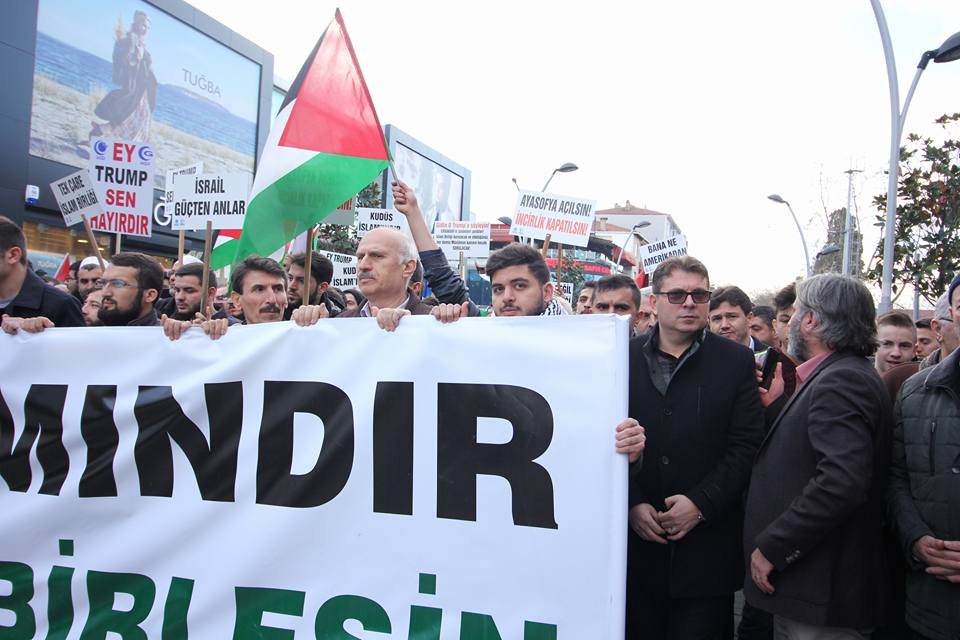 ABD Başkanı Donald Trump’ın Kudüs’ü İsrail’in başkenti olarak tanıma kararı sonrasında ülke genelinde tepki yağmaya devam ediyor. Son olarak Sakarya’da bulunan 60’a yakın Sivil Toplum Kuruluşu (STK) üyeleri ve temsilcileri karara tepki göstererek yürüyüş düzenledi. Çark Caddesi başından başlayan yürüyüş yaklaşık 750 kişinin katılımıyla Orhan Cami önünde son buldu. Orhan Camisi önünde okunan Kuran-ı Kerim sonrasında bir basın açıklaması gerçekleşti.