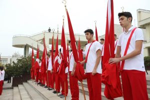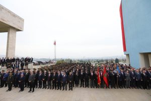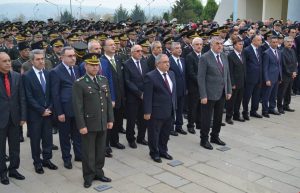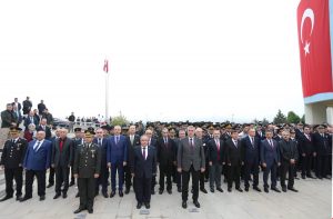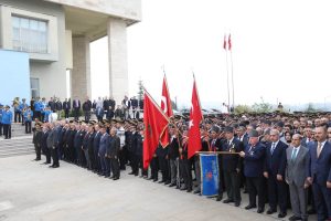 İstiklal Marşı’nın okunmasının ardından resmi tören, bayrakların yarıya indirilmesi ile sona erdi.