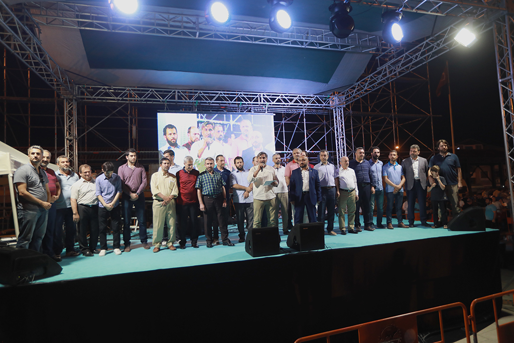 Sakarya STK’ları adına bir konuşma gerçekleştiren İnsan Hak ve Hürriyetleri İnsani Yardım Vakfı Sakarya İl Başkanı Sebahattin Aydın, “Bir topluluğu millet haline getiren en önemli faktör aynı duygular etrafında kenetlenmesidir. Aynen 15 Temmuz gecesinde olduğu gibi. Aynen geçen hafta Emani El-Rahman’ın cenazesinde birleştiğimiz gibi. Bizler bugün Anadolu topraklarına sıkıştırılmış, dün ise Kafkasya’dan Balkanlara, Asya’dan Afrika’ya yayılmış bir medeniyetin çocukları olarak 15 Temmuz gecesi Rabbimizin kalbimizden korkuyu söküp almasıyla evlerimizden Türkü, Kürdü, Lazı, Çerkezi, Boşnağı, Arabı şahadet arzusuyla meydanlara çıktık. Ancak 249’umuza şahadet nasip oldu” ifadelerini kullandı.