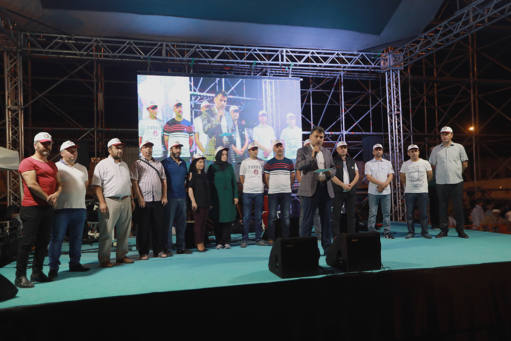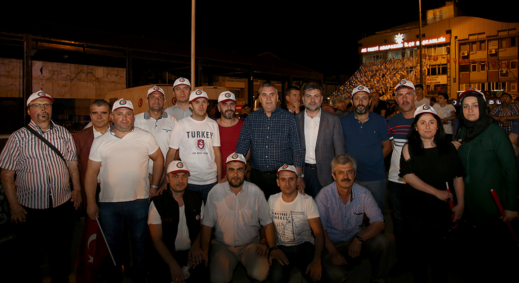Aydın, “FETÖ denilen bu kökü dışarıda olan güruh daha öncede örneğini gördüğümüz gibi 1970’lerde Amerika Birleşik Devletleri tarafından kıblemiz Mekke’de rabıta adıyla yine dirliğimizi birliğimizi bozmak adına harekete geçmişti. Bize kendilerini komşumuz, iş abimiz gibi tanıttılar. Medine’deki münafıklar gibi hemen yanımızda bize karşı iş tuttular. O gece başta İstanbul ve Ankara olmak üzere Sakarya’da ve tüm şehirlerde bu örgüte dur dedik. Aynı anda Mekke’de, Gazze’de, Somali’de, Şam’da, Bosna’da, Çeçenistan’da ümmet bizim için dualar ediyordu. Aynı gece 81 ilimizde hain örgüt tankları topları tüfekleriyle milletimizin karşısına dikilmişken, aynı anda Afrin’de PKK, PYD ve DAEŞ sınırdan içeri girmek için emir bekliyordu. Bütün uluslararası örgütler bu hain darbeyi sessizce seyrediyordu. 15 Temmuz sözün de kararın da millete geçtiği bir tarihtir. Hiçbir haininin ne yakınlığı olursa olsun cezasız kalmamasını, hiçbir masumunda bedeli ne olursa olsun cezalandırılmamasını istiyoruz. Söz milletin karar milletin.”