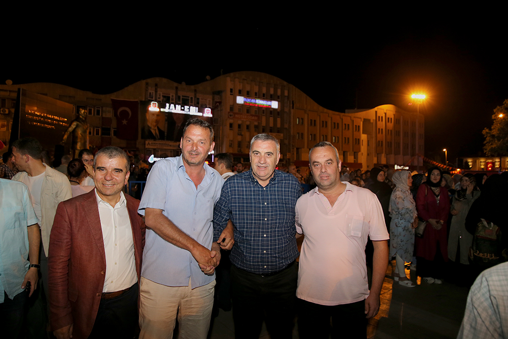 Sakarya Büyükşehir Belediye Başkanı Zeki Toçoğlu, 15 Temmuz Demokrasi ve Milli Birlik Günü kapsamında düzenlenen etkinliklerin 2. gün programına katıldı. Demokrasi Meydanı’nda düzenlenen programda AK Parti Sakarya Milletvekilleri Prof. Dr. Mustafa İsen ve Şaban Dişli, CHP Sakarya Milletvekili Engin Özkoç, AK Parti Sakarya İl Başkanı Fevzi Kılıç, CHP Sakarya İl Başkanı Ayça Taşkent, Belediye Başkanları, İl Müdürleri, AK Parti İl ve İlçe teşkilatı mensupları, 50 Sivil Toplum Kuruluşu’ndan temsilciler ve vatandaşlar yer aldı. Mehter gösterisi ile başlayan programda Katlı Pazaryeri Müezzin Kayyımı İlyas Çetinnar tarafından Kuran-ı Kerim tilavet edildi. Program protokol konuşmalarının ardından düzenlenen Eşref Ziya Terzi konseri ile sona erdi.