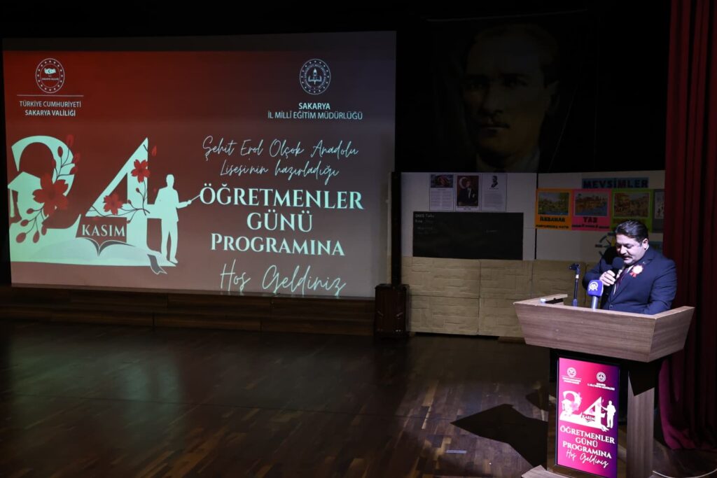 Sakarya’da 24 Kasım Öğretmenler Günü, Sakarya İl Millî Eğitim Müdürlüğü tarafından hazırlanan kapsamlı bir programla kutlandı. Programa Sakarya Valisi Sayın Rahmi DOĞAN, AK Parti Sakarya Milletvekili Ali İNCİ, AK Parti Sakarya Milletvekili Lütfi BAYRAKTAR, İl Millî Eğitim Müdürü Coşkun BAKIRTAŞ, MHP Sakarya İl Başkanı Oğuz ALKAŞ, il protokolü, öğretmenler, öğrenciler ve çok sayıda davetli katıldı.