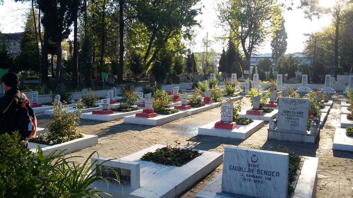 Yürüyüş sonrasında şehitlikte Kur’an-ı Kerim okunmasının ardından dua edildi.