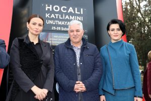 Azerbaycan Milletvekili Sona Aliyeva konuşmalarını yapmak üzere davet edildiğinde, davetliler tarafından ayakta alkışlandı. Aliyeva, Azerbaycan için Hocalı soykırımının, çok büyük ve en acı bir tarih sayfası olduğunu söyledi. Zaman zaman Türk halkının da bu tür soykırımlarla karşı karşıya kaldığını kaydeden Aliyeva, “Biz özgeçmişimizi bir kez daha yeniledik. Özgeçmişini bilmeyenin, geleceği olmaz. Doğma toprakta tek millet Türkiye. Bizlerde daima Türk halkının yanındayız. Bugün bu anıtın açılışında emeği geçenlere sonsuz minnettarlığımı bildirmek istiyorum. Böyle bir günde bizi unutmamışsınız bizim acımızı, bizimle birlikte yaşamaya devam etmişsiniz. Sizlere çok minnettarım” şeklinde duygularını dile getirdi.