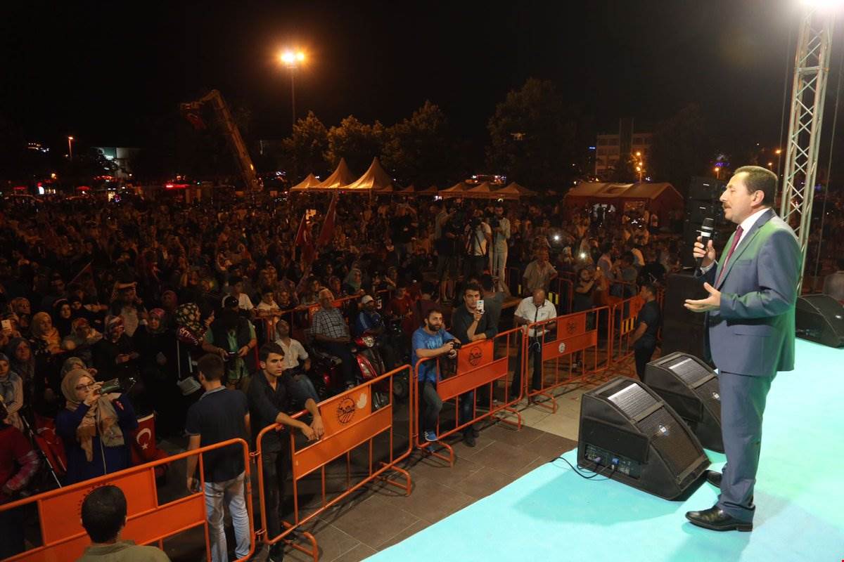 Gerçekleşen anma etkinliklerinde konuşan Sakarya Büyükşehir Belediye Başkanı Zeki Toçoğlu, “Bizler var gücümüzle çalışırken birde baktık ki içimizde yuvalanmış hainler memleketimi bölmek, seçilmiş hükümetimizi devirmek ve ülkemizi satmak için harekete geçtiler. Ama Türkiye’nin her yerinde olduğu gibi Sakarya’da da hemşerilerimiz bu hainlere geçit vermedi. Bu meydanda tam bir ay beraberce bu alçaklara ülkemizi satmaya çalışan bu hainlere karşı beraberce direndik. Bir yıldır millet olarak, Sakarya olarak ayaktayız. Bu ülkemizi bölmeye çalışan hainler alçaklar nerede. Kimisi Amerika’da, Almanya’da veya Avrupa’da ihanetlerine devam ederken, kimisi de yaptıklarını hesabını vermekle meşgul. İşte millet olarak geçit vermediğimiz bu hain darbe girişimine karşı onun yıl dönümünde tekrar dimdik ayakta olduğumuzu ve ülkemizi ve milletimize, seçilmişlerimize yapılacak en küçük bir harekette herkesin karşısında dik duracağımızı bir kez daha gösteriyoruz” dedi.