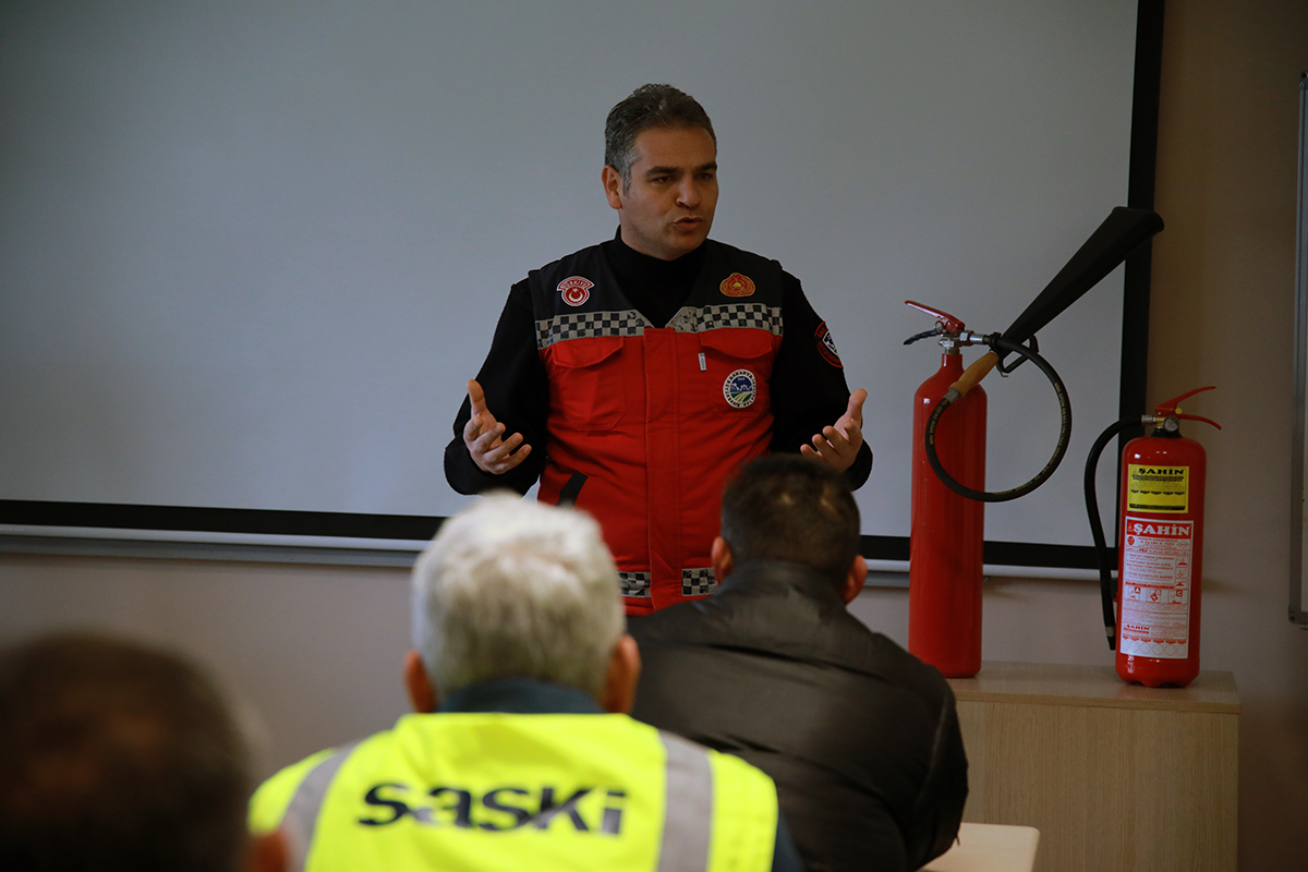 Büyükşehir Belediyesi İtfaiye Dairesi Başkanlığı ve SASKİ İnsan Kaynakları ve Eğitim Dairesi Başkanlığı koordinasyonuyla yangın eğitimi ve tatbikatı düzenlendi.