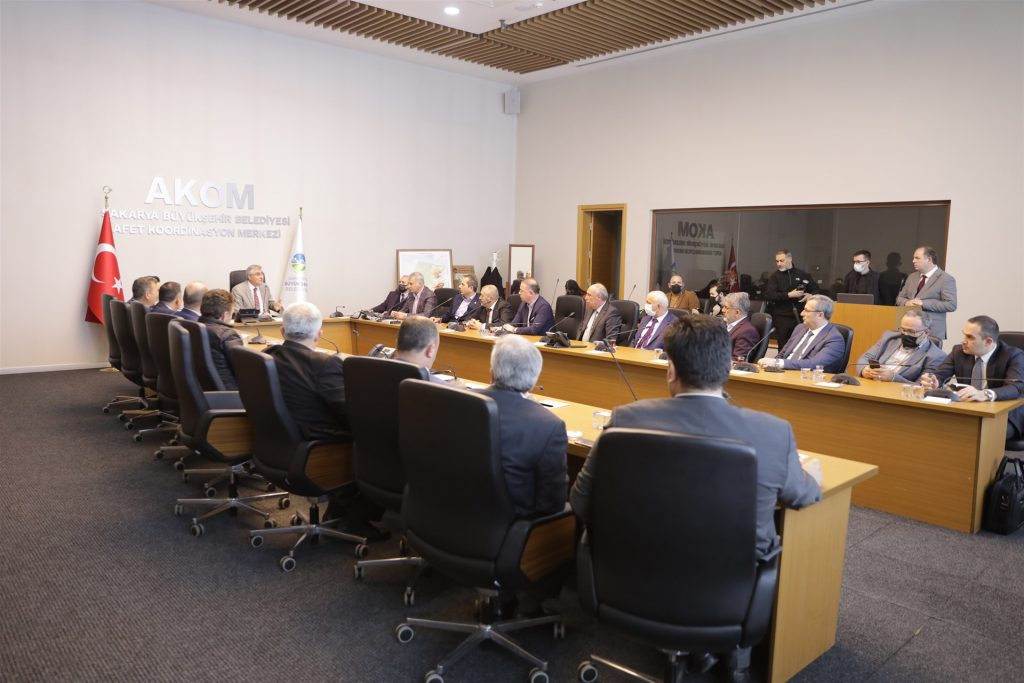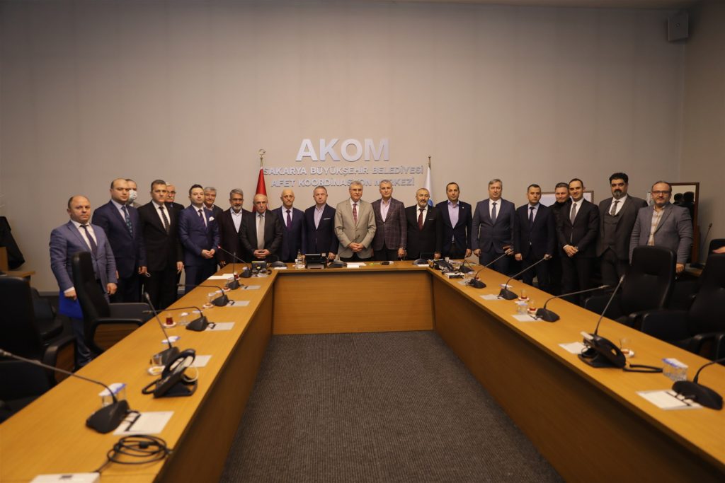 SATSO Meclis Başkanı Talip Kuriş ve Yönetim Kurulu Başkanı A. Akgün Altuğ ve beraberindeki heyet, SATSO’daki toplantının ardından, Sakarya Büyükşehir Belediyesi Başkanı Ekrem Yüce’nin ev sahipliğinde Afet Koordinasyon Merkezinde gerçekleşen Kuzey Sakarya Organize Sanayi Birliği İstişare Toplantısı’na iştirak ettiler. Toplantıda Başkan Yüce’nin yanı sıra SASKİ Genel Müdürü Yiğit Turan ve ilgili daire başkanları da hazır bulundu.
