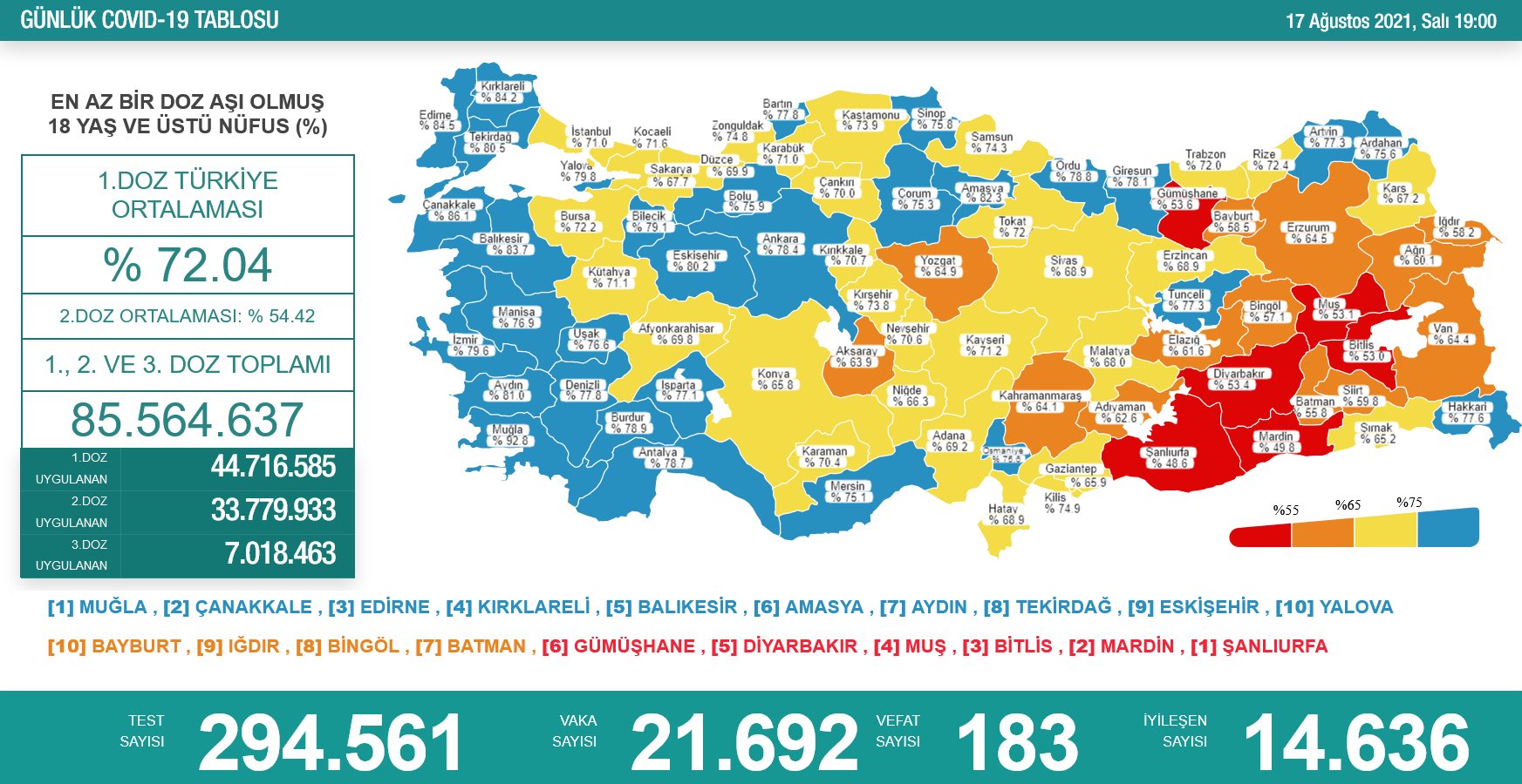 ‘Bugün 21.692 yeni vaka,183 yeni ölüm’