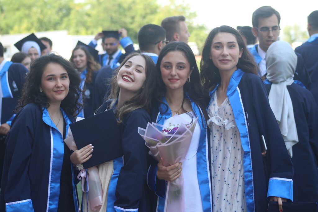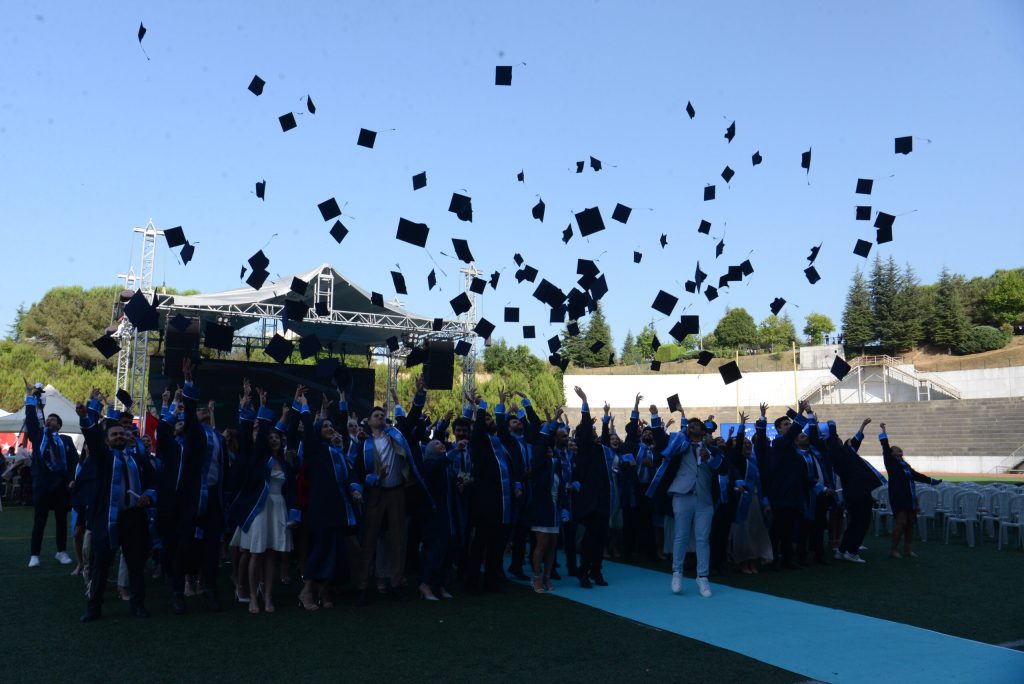 Tören, öğrencilerin mezuniyet yemininin ardından keplerini fırlatması ile sona erdi.