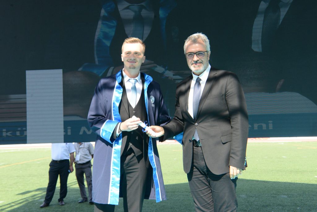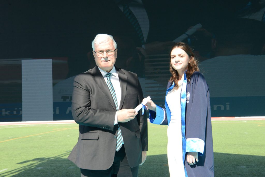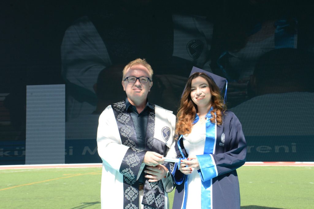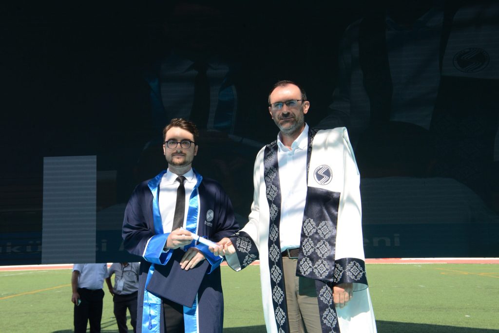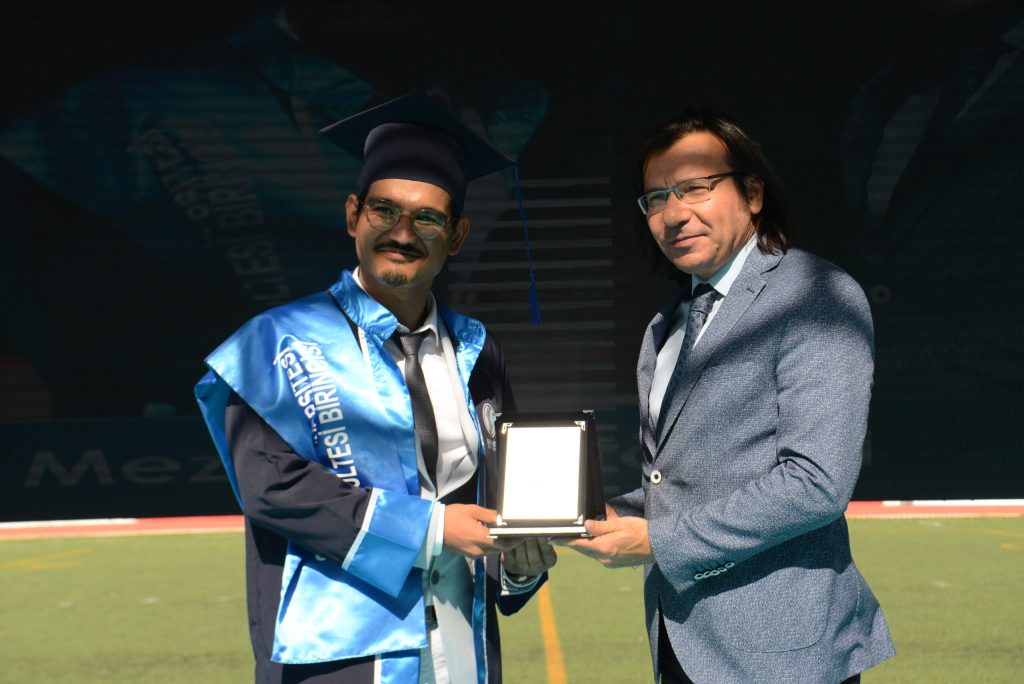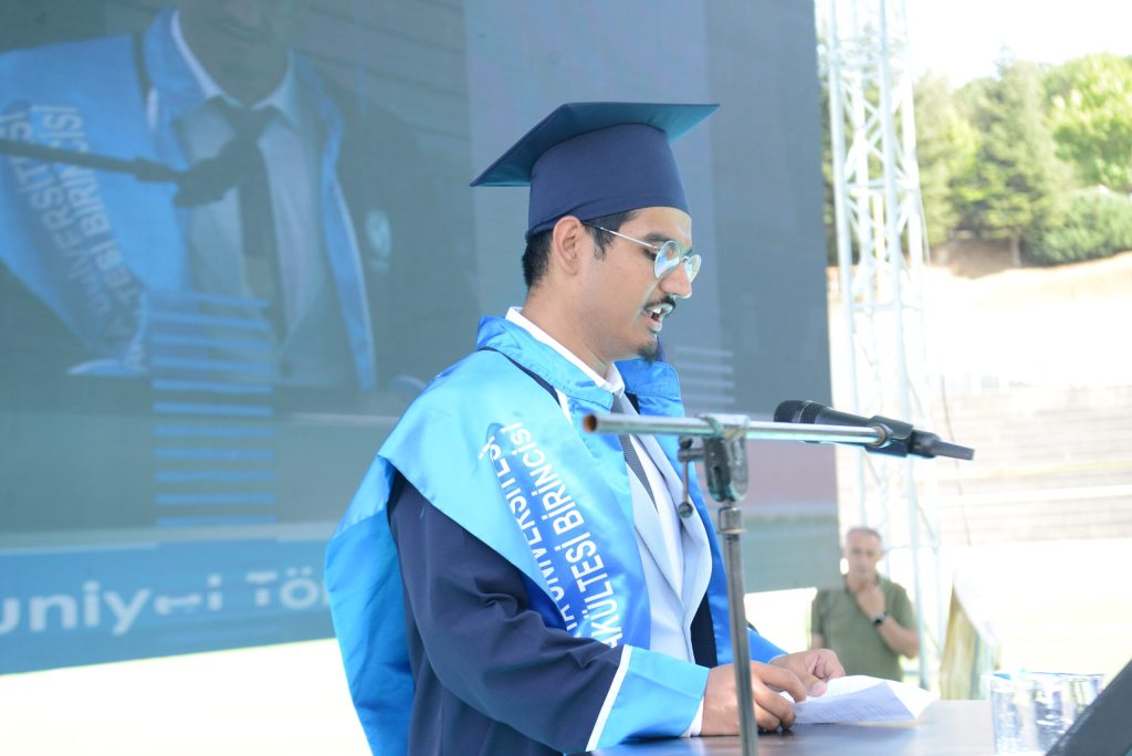 Tıp Fakültesi Birincisi Dr.Metin Oktay Beyter de birincilik konuşmasında, “Bu uzun ve meşakkatli yolculuğumuzu acısıyla tatlısıyla pandemisiyle bitirmiş bulunmaktayız ama aslında her son gibi bu da başka bir yolculuğun kapılarını aralamakta ve önümüzdeki bu yol hekimliktir. Bu zorlu ve uzun tıp eğitiminde daima yanımda olan desteklerini asla esirgemeyen ailem ve en başta da abim Adem Beyter’e teşekkürlerimi borç bilirim iyi ki varsınız destekleriniz olmasa bugün burada olamazdım.” Beyter konuşmasını bitirdikten sonra mezun kütüğüne mezuniyet plaketini çaktı.