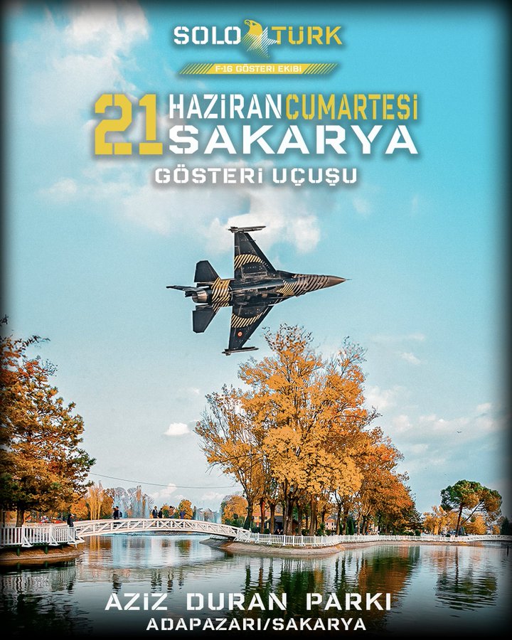 Sakarya Valiliğinden yapılan açıklamada ”Gururumuz SOLOTÜRK’ü izlemek üzere tüm halkımız davetlidir!”denildi
