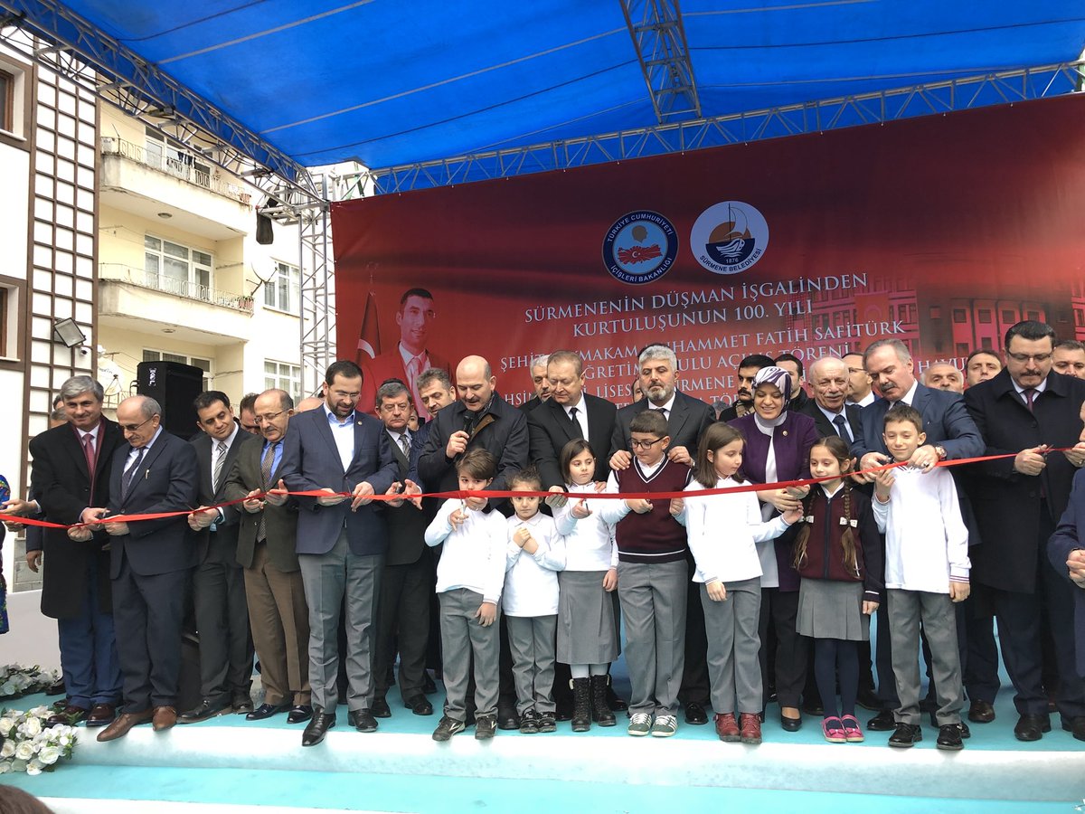 Şehit kaymakamımız Muhammet Fatih SAFİTŪRK ün adının verildiği okul Trabzon Sürmene ilçesinde İçişleri Bakanımız Süleyman Soylu nun katılımıyla hizmete girdi.İçişleri Bakanı Süleyman Soylu, Trabzon’un Sürmene ilçesinde yapımı tamamlanan Şehit Kaymakam Muhammet Fatih Safitürk İlköğretim Okulu’nun açılışı ile Hasan Tahsin Kırali Lisesi ve Sürmene Yarı Olimpik Yüzme Havuzu temel atma törenine katıldı.