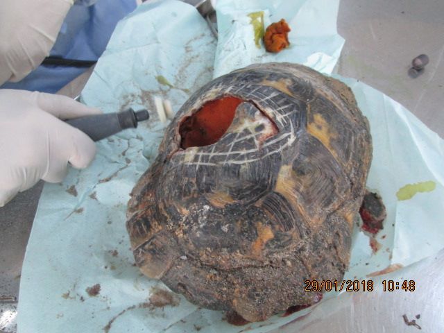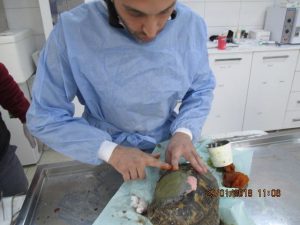 Duyarlı bir vatandaşımız tarafından Sakarya İli Adapazarı İlçesinde, kabuğu kırılıp ağır şekilde yaralanmış olarak bulunan kaplumbağa Orman ve Su İşleri Sakarya Şube Müdürlüğümüze teslim edildi. Adapazarı Belediyesi Veteriner Hekimi Remzi İZİ tarafından acık yaralar tedavi edilerek,kabuğu tekrardan metilmetakrilat maddesi ile kapatılarak onarılan kaplumbağa eski sağlığına kavuşturulup doğal yaşam alanına bırakıldı.