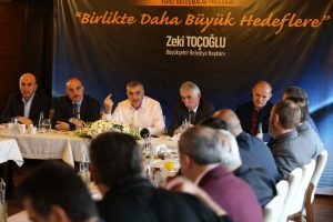 Başkan Zeki Toçoğlu, “Muhtarlarımızla uyum içerisinde çalışmalarımızı sürdürüyoruz. Hem partimiz hem de Büyükşehir olarak önümüzdeki seçimlerde sizlerin düşüncelerini önemsiyoruz. Mahallelerimizin talep ve ihtiyaçlarını iletmeniz bizler için önemli. Bu toplantımızda bizlere ileteceğiniz tüm bilgileri not edecek, ilgili bürokratlarımıza gerekli talimatları vereceğiz. İnşallah birlik ve beraberliğimizle şehrimize hizmet sunmaya devam edeceğiz” dedi.