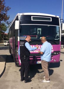 Fatih Pistil, “2018 yılında ekiplerimizi artırarak yeni yönetmelik kapsamında toplu taşımada denetimlerimizi arttıracağız. Vatandaşlarımızın toplu taşıma memnuniyeti çok önemli. Bu durumun esnafımızın da önceliği ve talebi olduğunu biliyoruz. Esnafımızla birlikte ve uyumlu bir şekilde çalışıyoruz. Ruhsat, sefer sayısı, temizlik, klima, ayakta yolcu yoğunluğu, diyalog, kıyafet ve guzergah ihlali gibi birçok konuda denetimler yaptık, yapmaya da devam edeceğiz. Bakanlıklar tarafından düzenlenen mevzuata göre tüm toplu taşıma araçlarına kamera araç takip sistemi kayıt cihazı ve panik butonu zorunlu hale getirildi. Bunu da eklemiş olalım” dedi.