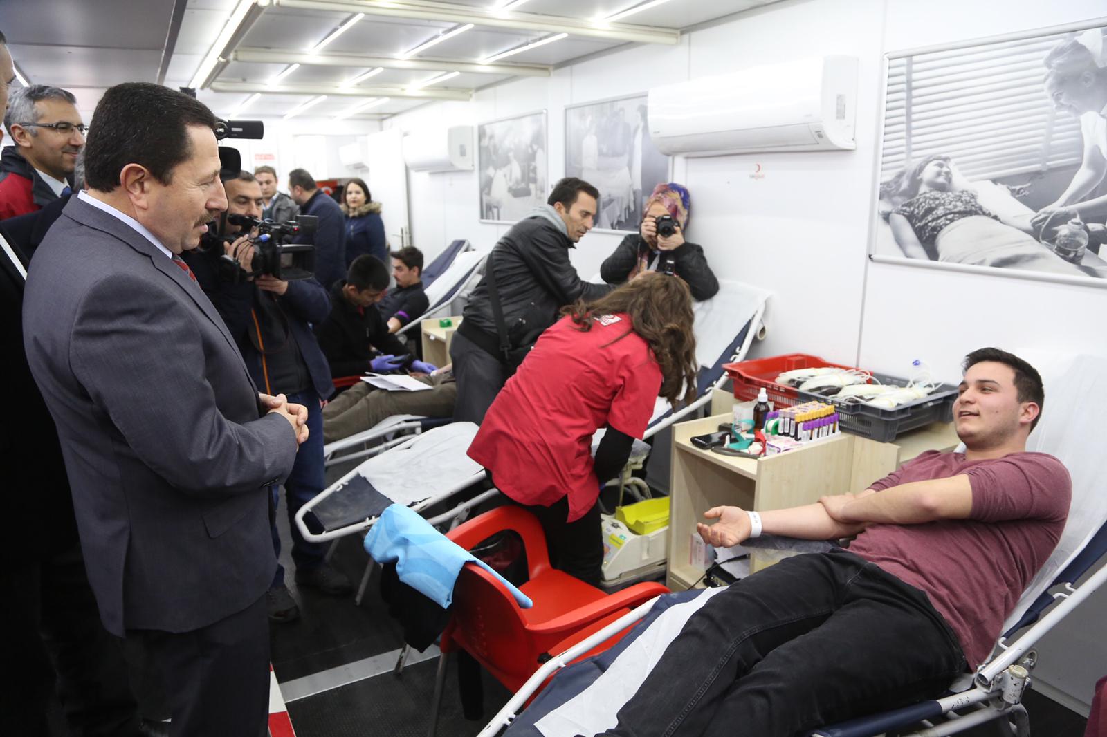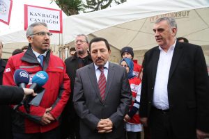 Tüm halkımızı Kızılay Kan Bağışı Kampanyasına katılmaya davet ettiğini dile getiren Vali Balkanlıoğlu, “Rabbimiz bizlere paylaşarak yücelin diyor. Özellikle mağdurlara yardım etmek, imkânlar ölçüsünde bir şeyleri ihtiyaç sahipleri ile paylaşmak en güzel erdem, fazilet ve dini bir emirdir. Aynı zamanda insani ve ahlaki bir görevdir. Bağışların en yücesi ise; insana ve insan sağlığına yapılan bağıştır. Kan da bunlardan en önemlilerinden birisi ve kime ne zaman, nerede lazım olacağı belli olmayan hayati bir unsurdur. İhtiyaç hâsıl olduğu ve hayati tehlikelerin bulunduğu durumlarda elimizin altında bulunması gereken kanın gönüllüler tarafından bağışlanması gerekiyor. Hatta bazen kan bulunamadığı için hayatını kaybeden hastalarımız da var. Bir de tabi lösemi dediğimiz kemik iliği kanseri olan hastalarımızın, kök hücre nakli yoluyla hayata tutunabilmeleri için kan verilirken aynı zamanda bu tahliller de yapılıyor. Burada 18 yaşında lösemi hastası olan Utku Akçay isimli bir kardeşimiz var, acilen tedavi edilmesi gerekiyor. Bizler de hem gönüllü kan bağışında bulunmak hem de Utku kardeşimize destek olmak için buraya geldik. Başta SBB Başkanımız, Kaymakamımız, belediye başkanlarımıza ve bütün destek verenlere teşekkür ediyorum” dedi.