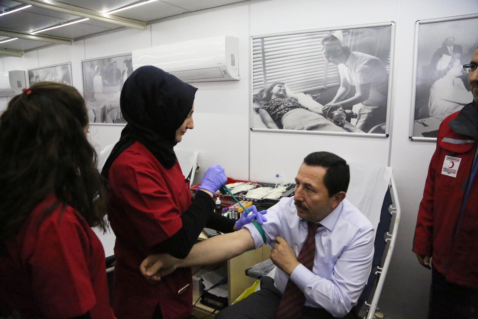 Vali İrfan Balkanlıoğlu, Kızılay Kan Bağışı Kampanyasına destek ve lösemi hastası Utku Akçay’a katkı sağlamak için kan bağışında bulundu.