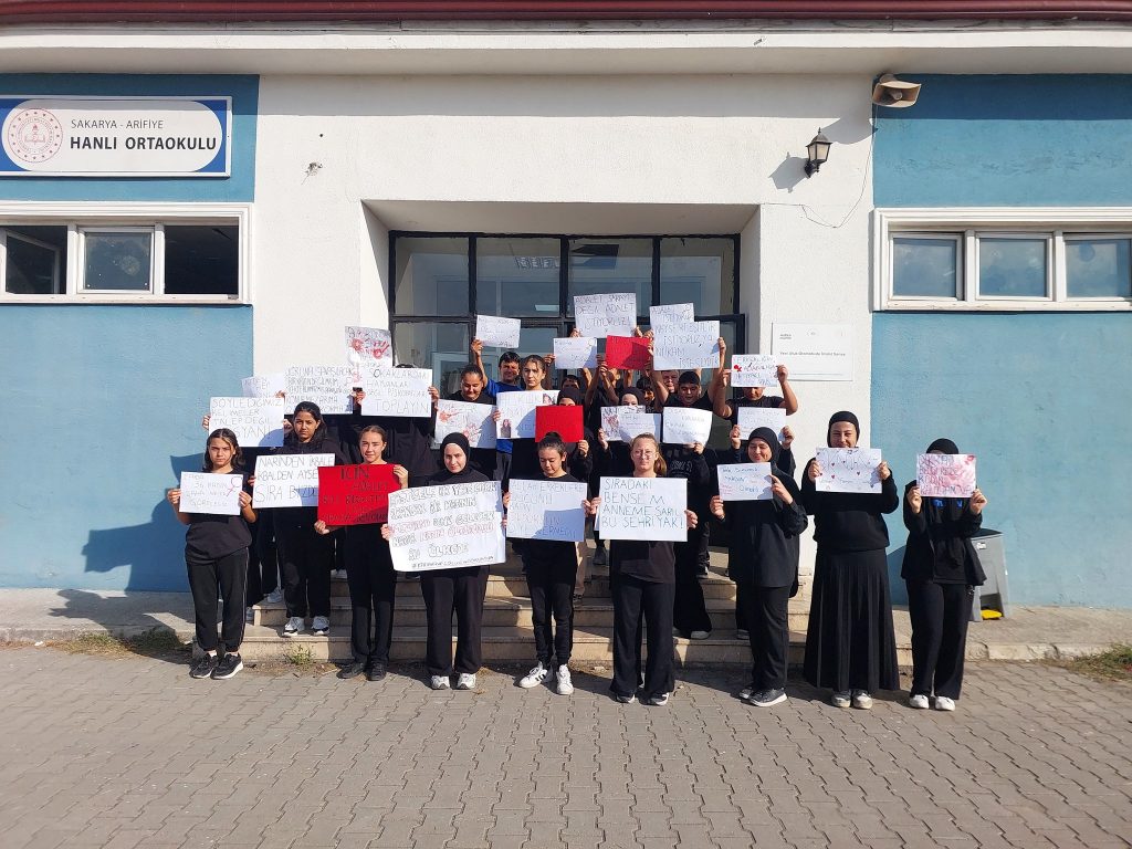 Son zamanlarda artan kadın ve çocuk cinayetlerine dikkat çekmek ve bu konuda farkındalık oluşturmak amacıyla Arifiye Hanlı ilkokulu ve Ortaokulunun tüm öğrenci ve öğretmenleri bugün siyah kıyafetlerle okula geldi.