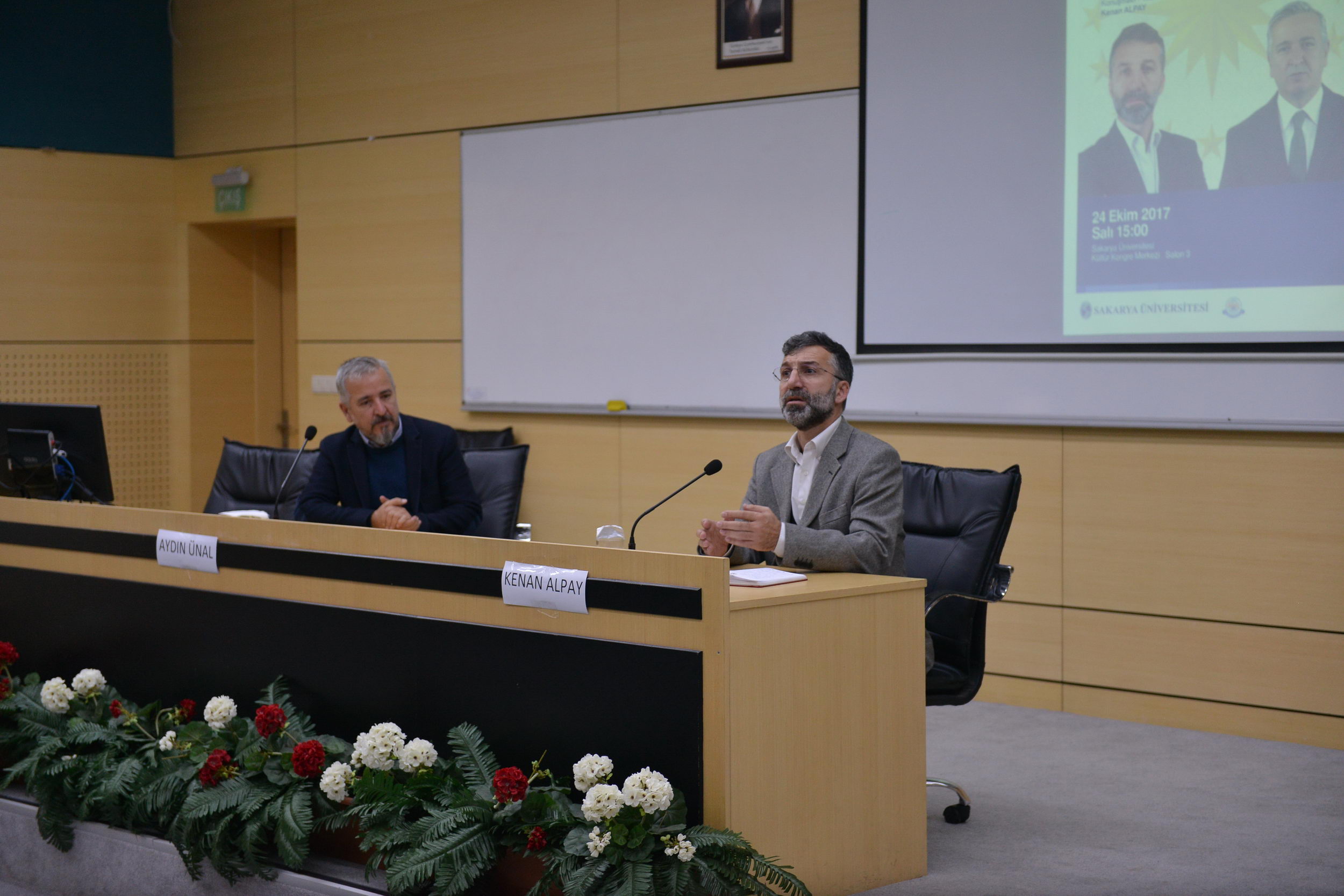 SAÜ Kültür ve Kongre Merkezinde düzenlenen konferansa konuşmacı olarak Ankara Milletvekili Aydın Ünal ve yazar Kenan Alpay katıldı.
