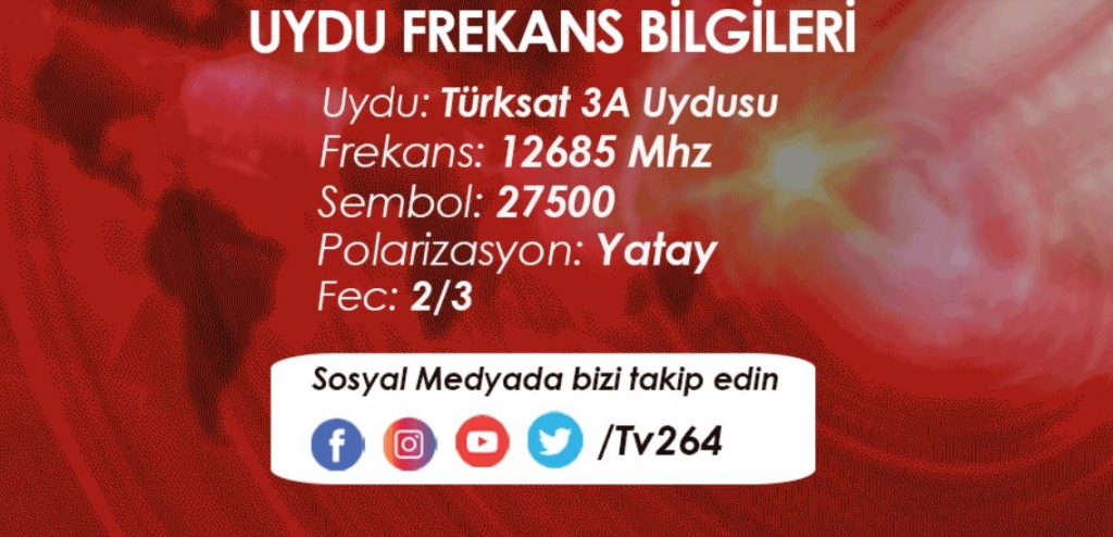 1 Mayıs’da yayınlarına başlayacak olan TV 264’ün frekans bilgileri ise şu şekilde: