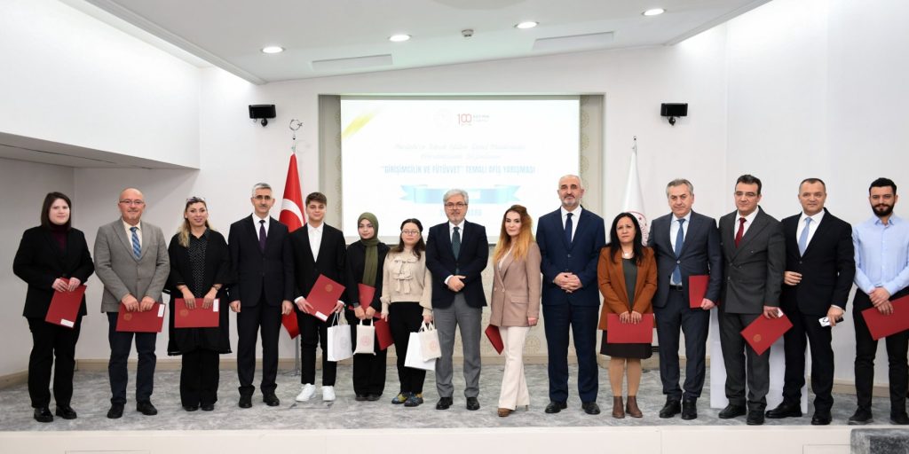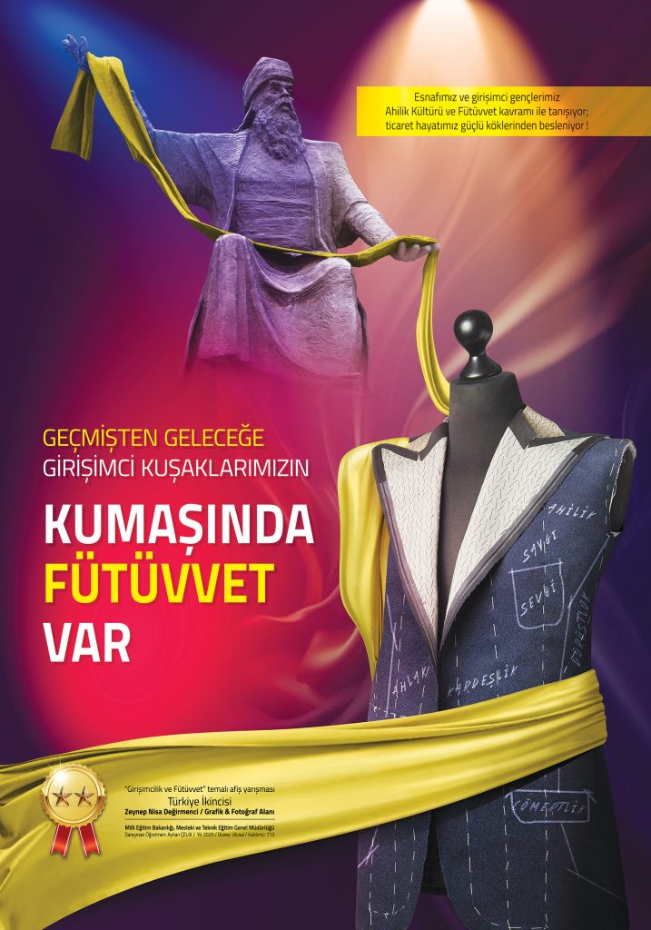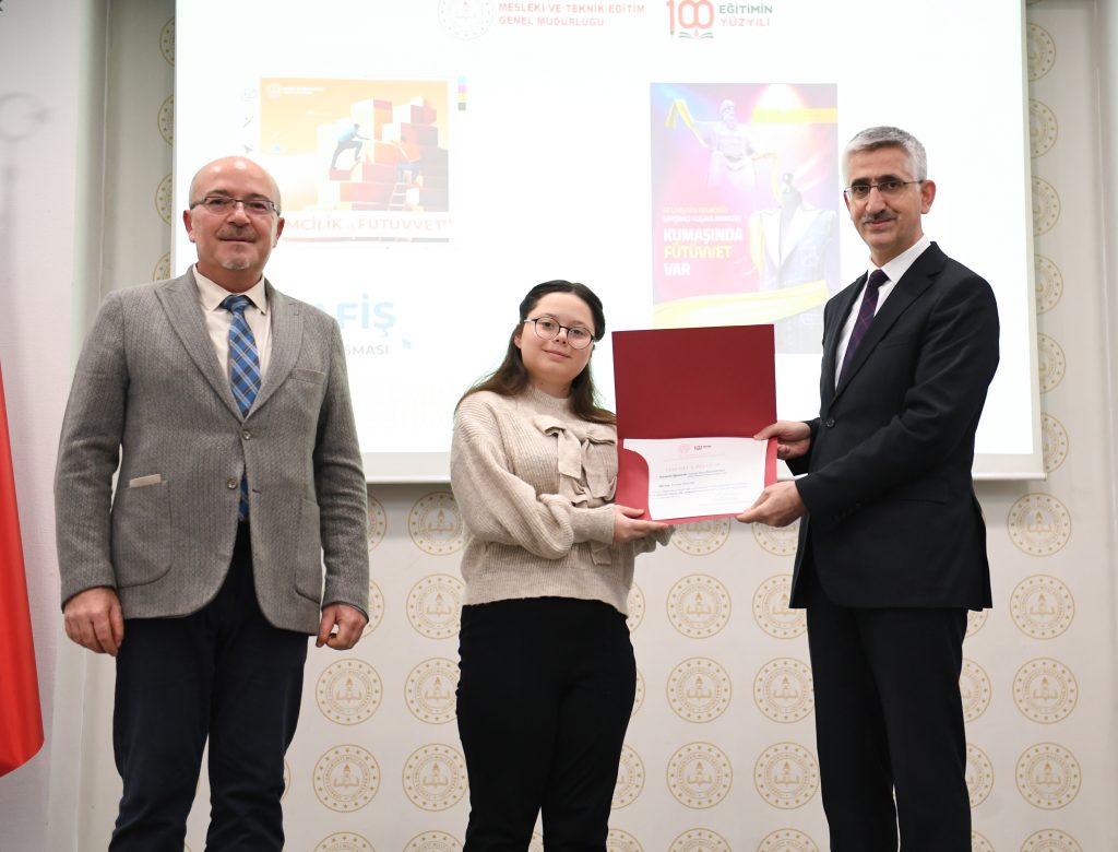 Mesleki ve Teknik Eğitim Genel Müdürü KARAGÖZ de yaptığı konuşmada, mesleki ve teknik ortaöğretim kurumları bünyesinde düzenlenen “Girişimcilik ve Fütüvvet” temalı afiş yarışması ile gençlerin sosyal ve kişisel gelişimlerine katkıda bulunarak girişimcilik bilinci ve fütüvvet anlayışı konusunda farkındalıklarını artırmayı hedeflediklerini dile getirdi.