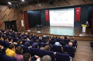 Serdivan Şehit Erol Olçok Anadolu Lisesi Toplantı Salonundaki programa Vali Balkanlıoğlu’nun yanı sıra; Serdivan Kaymakamı Muhsin Çatmadım, İl Milli Eğitim Müdürü Pervin Töre, İlçe Milli Eğitim Müdürleri, okul yöneticileri, öğretmenler, öğrenci meclis başkanları ile öğrenciler katıldı.