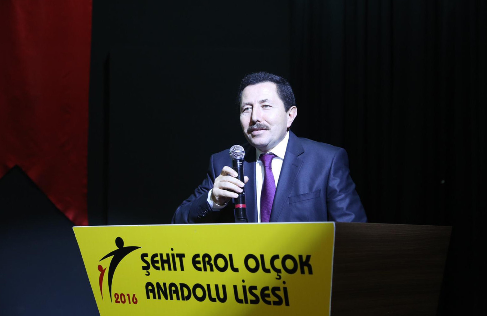 En büyük zenginiğimiz ve geleceğimiz sizlersiniz. Sizler arkadaşlarınızın temsilcileri olduğunuza göre, donanımlı insanlarsınız. Biz de size güveniyoruz. Allah’ın izniyle çok büyük yerlere geleceğinizden şüphem yoktur. Ben şuan karşımda küçük çocuklar görmüyorum, geleceğin Valisini, Kaymakamını, Profesörünü, Doktorunu hatta Bakanını, Başbakanını, Cumhurbaşkanını görüyorum, tabi artık yeni sistemle Devlet Başkanını görüyorum. Ne olursa olsun kendinize güvenin. Sayın Cumhurbaşkanımız sizden çok daha olumsuz koşullarda büyüyerek ve çalışarak o makama geldi. Hepinizin hedefi çok büyük olmalı. Hedef ne kadar büyük ise, istediğiniz yere o kadar çabuk ulaşırsınız” dedi.