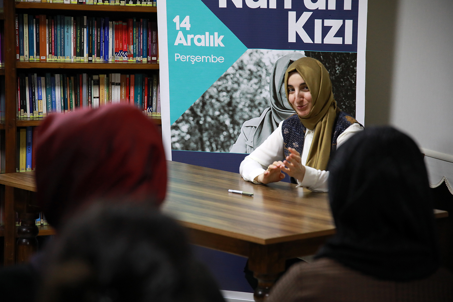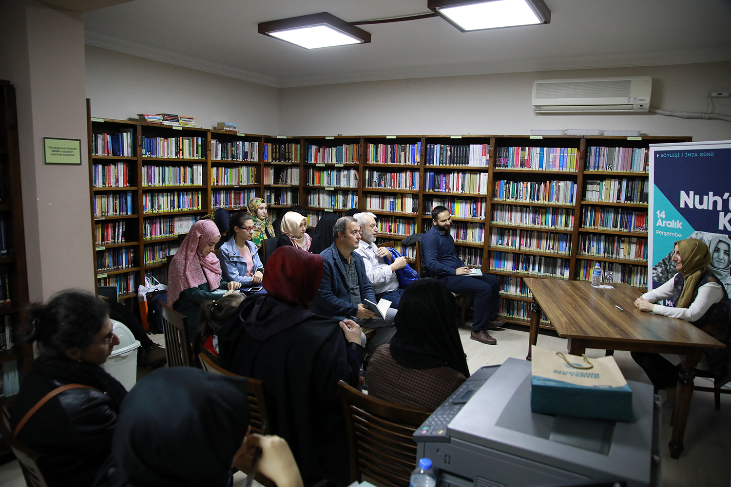 ‘Nuh’un Kızı’ konulu söyleşi ve imza günü programına katılan Yazar Mukadder Gemici, “Yazdığım hikâyeleri kimi zaman bir maden işçisi gibi çalışarak yazıyorum. Bir hikâye yazıyorum şuan, o hikâyeyi tamamlamak için çeşitli kitaplar, dokümanlar biriktirdim. Yazmak da okumak da sabır işidir. Önemli olan bu yoldaki çabadır” dedi.