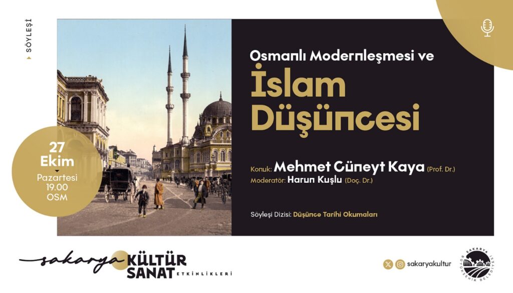 Sergi açılışının ardından saat 19.00’da düzenlenecek “Osmanlı Modernleşmesi ve İslam Düşüncesi” adlı söyleşide, Prof. Dr. Mehmet Cüneyt Kaya konuk olacak. Moderatörlüğünü Doç. Dr. Harun Kuşlu’nun üstleneceği programda, Osmanlı modernleşme sürecinin İslam düşüncesine etkileri, dönemin entelektüel dönüşümleri ve çağdaş İslam düşüncesine yansımaları derinlemesine ele alınacak.