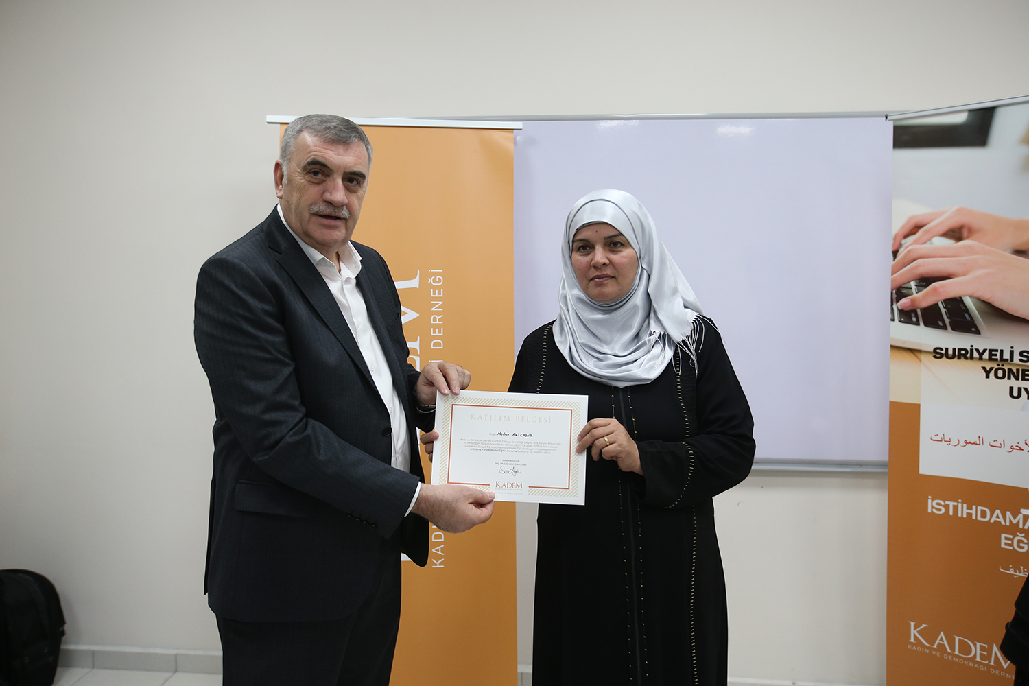 KADEM Genel Merkez Denetim Kurulu Üyesi Sezen Güngör, “Suriyeli Sığınmacı Kadınlara Yönelik Toplumsal Uyum Süreci Projesi’ne KADEM ailesi olarak oldukça önem vermekteyiz. Bu projeyle sığınmacı kardeşlerimizin topluma uyum sağlaması için önemli bir adım atmış olduk. Ülkemizde artık daha mutlu ve ait hissedebilecekler. KADEM olarak kursiyerlerimizin kursu başarıyla bitirmesinden dolayı çok memnunuz. Kursiyerlerimizin her biriyle gurur duyuyoruz” ifadelerini kullandı.